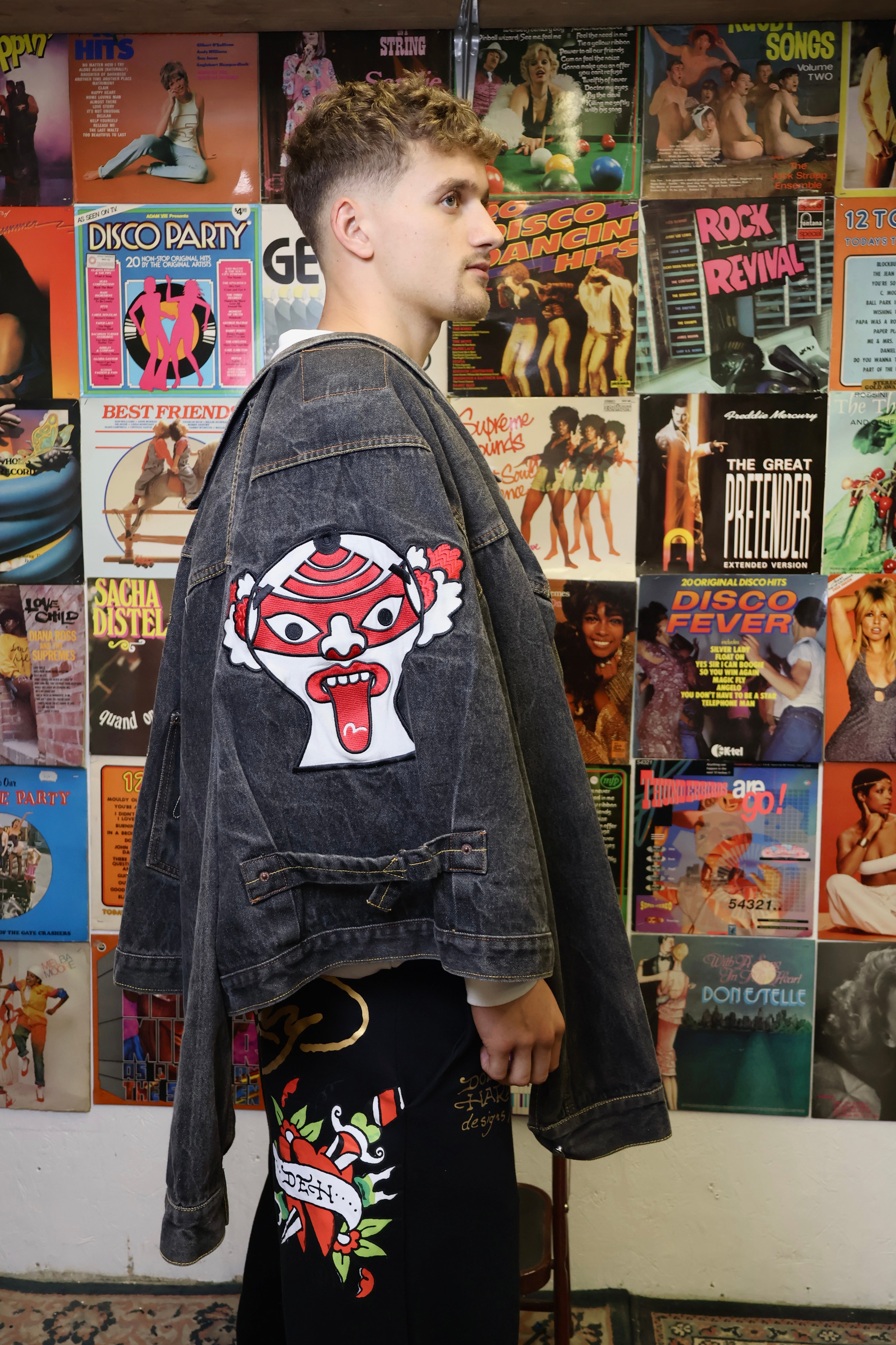 Evisu Embroidered Denim Jacket with Graphic Back Design - M