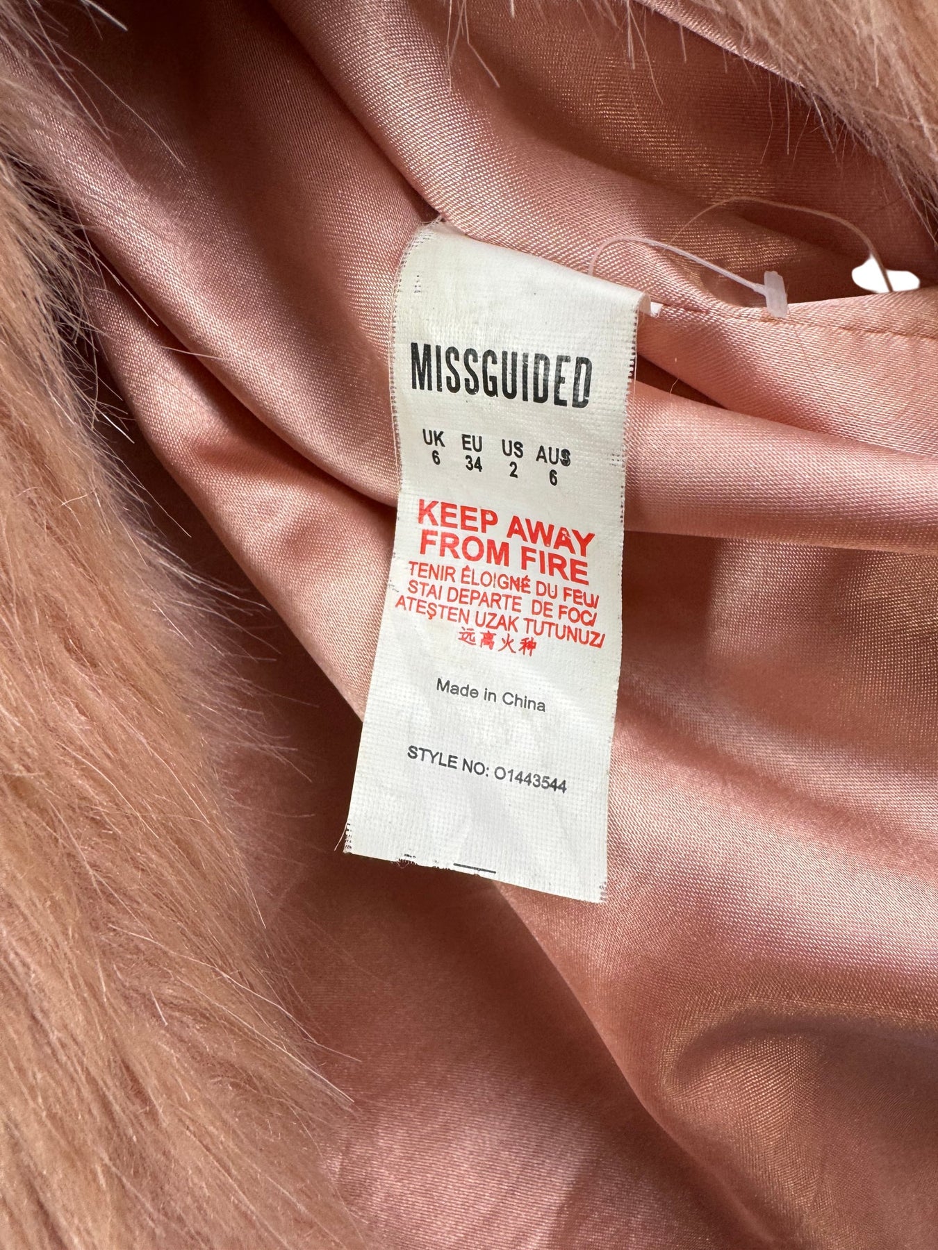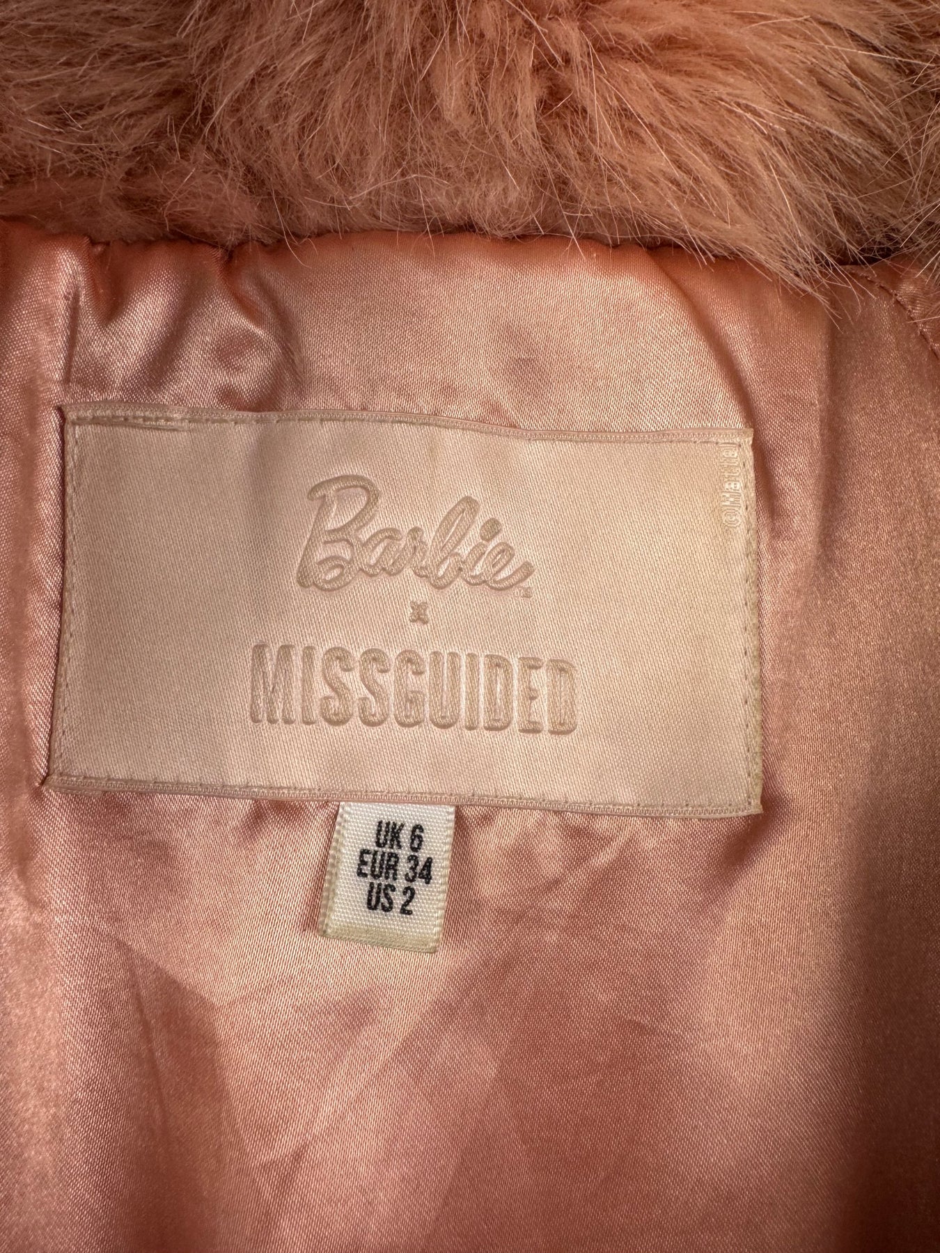 Hooded faux fur jacket made from 100% acrylic. Lined with 100% polyester for added comfort. Designed in collaboration between Barbie and Missguided. Features a warm, plush texture and an elegant pink hue.