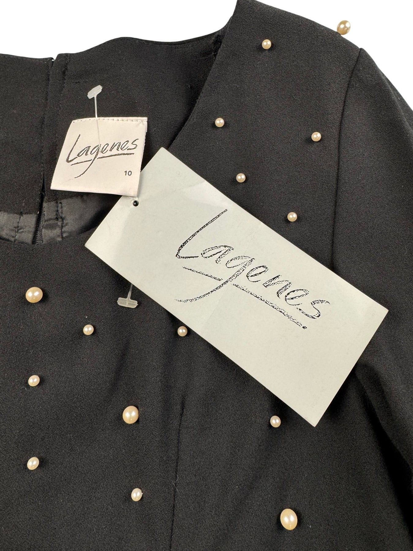 Elegant Black Dress With Bead Accents - XS - Think Vintage ltd