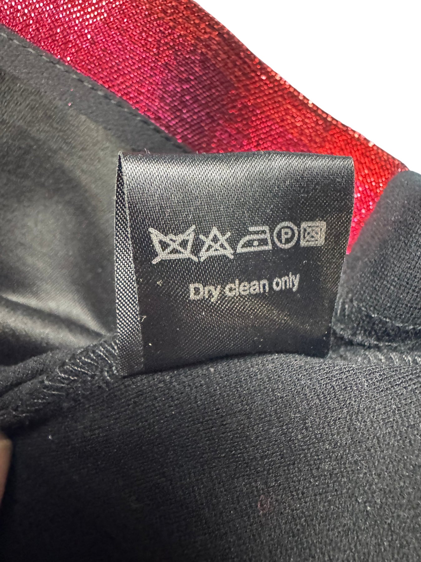 Short sleeve dress featuring a vibrant red and black colour scheme with contrasting panels. Made by Markus Lupfer, with a back zipper closure and a fitted silhouette. The dress requires dry cleaning only.