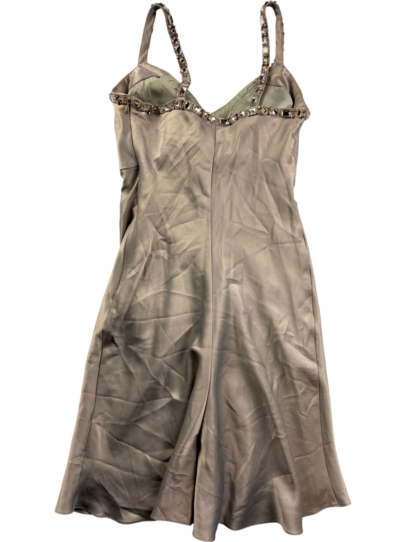Elegant dress with intricate embellishments along the neckline and straps. Made from 100% polyester with a lining of 100% acetate. Designed by Star By Julien Macdonald, featuring a ruched front for a flattering fit.