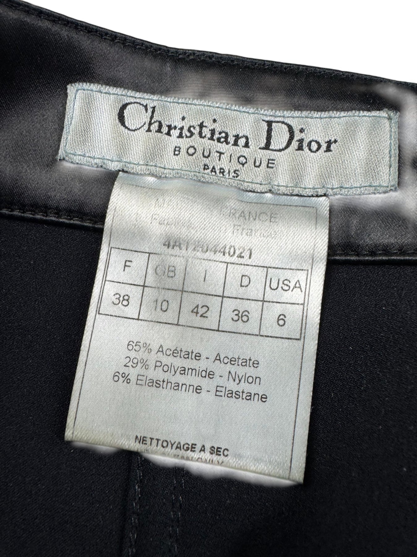 These trousers feature a sleek black design and are manufactured from a blend of 65% acetate, 29% polyamide, and 6% elastane. They come with a straight leg fit and include two back pockets for utility. The waistband showcases the signature Christian Dior label, ensuring authenticity.