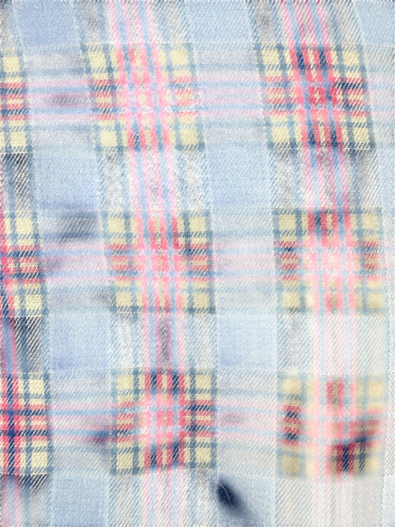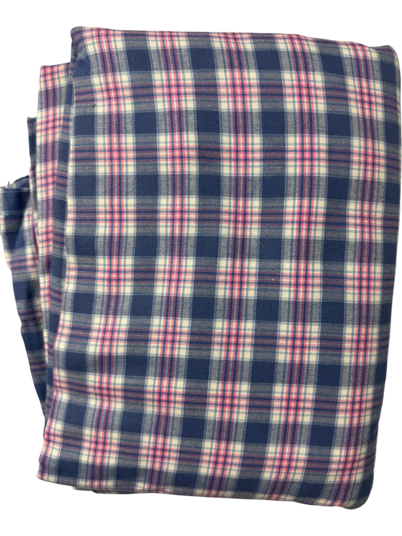 This fabric features a classic plaid checkered pattern in blue, pink, and white. It is suitable for various crafting and textile projects.