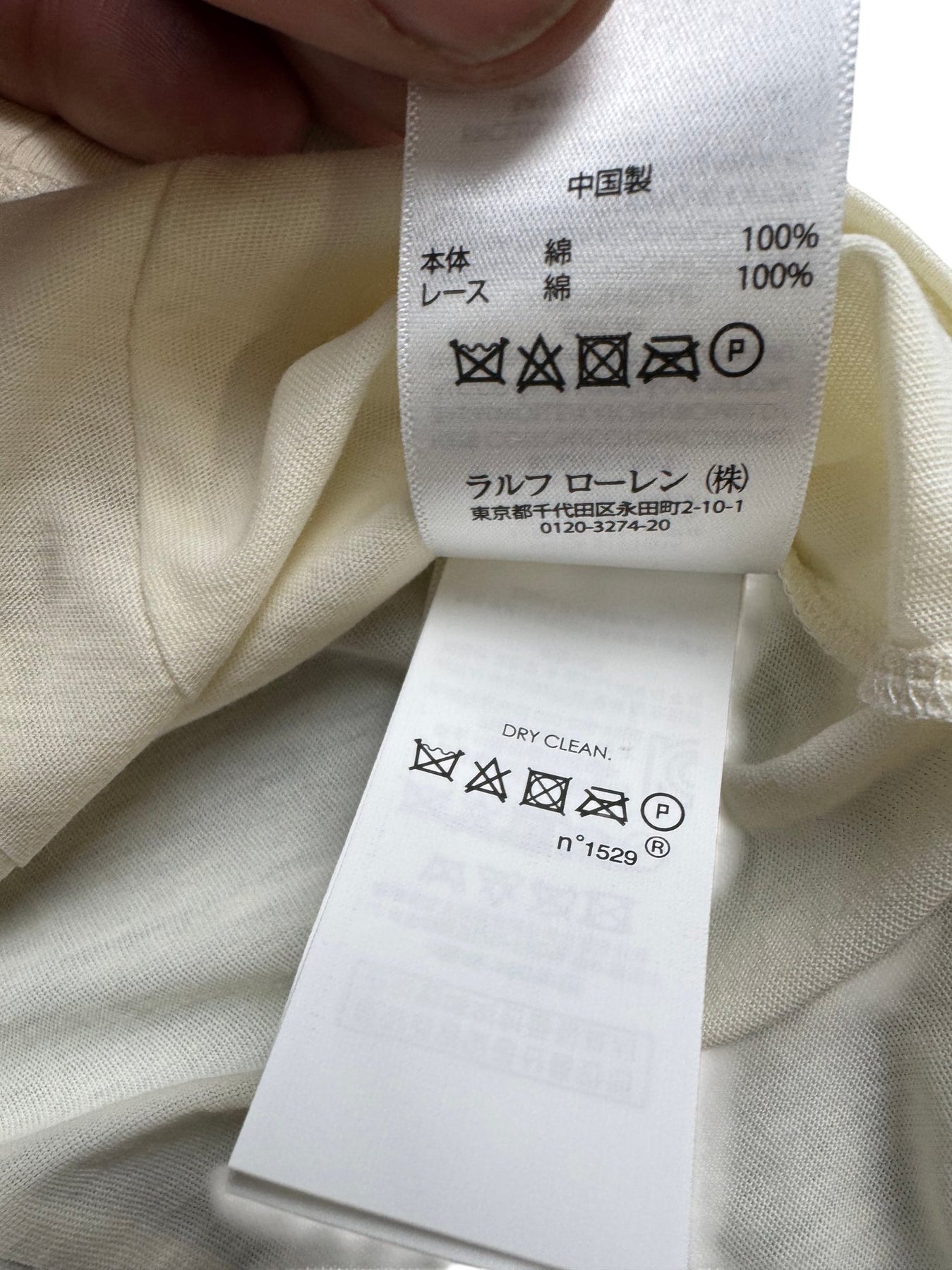 This blouse by Ralph Lauren features delicate lace trim and ruffled details on the shoulders. Made of 100% cotton, it offers a soft, breathable fit. The blouse displays a high collar and intricate stitching down the front, enhancing its elegant appeal.