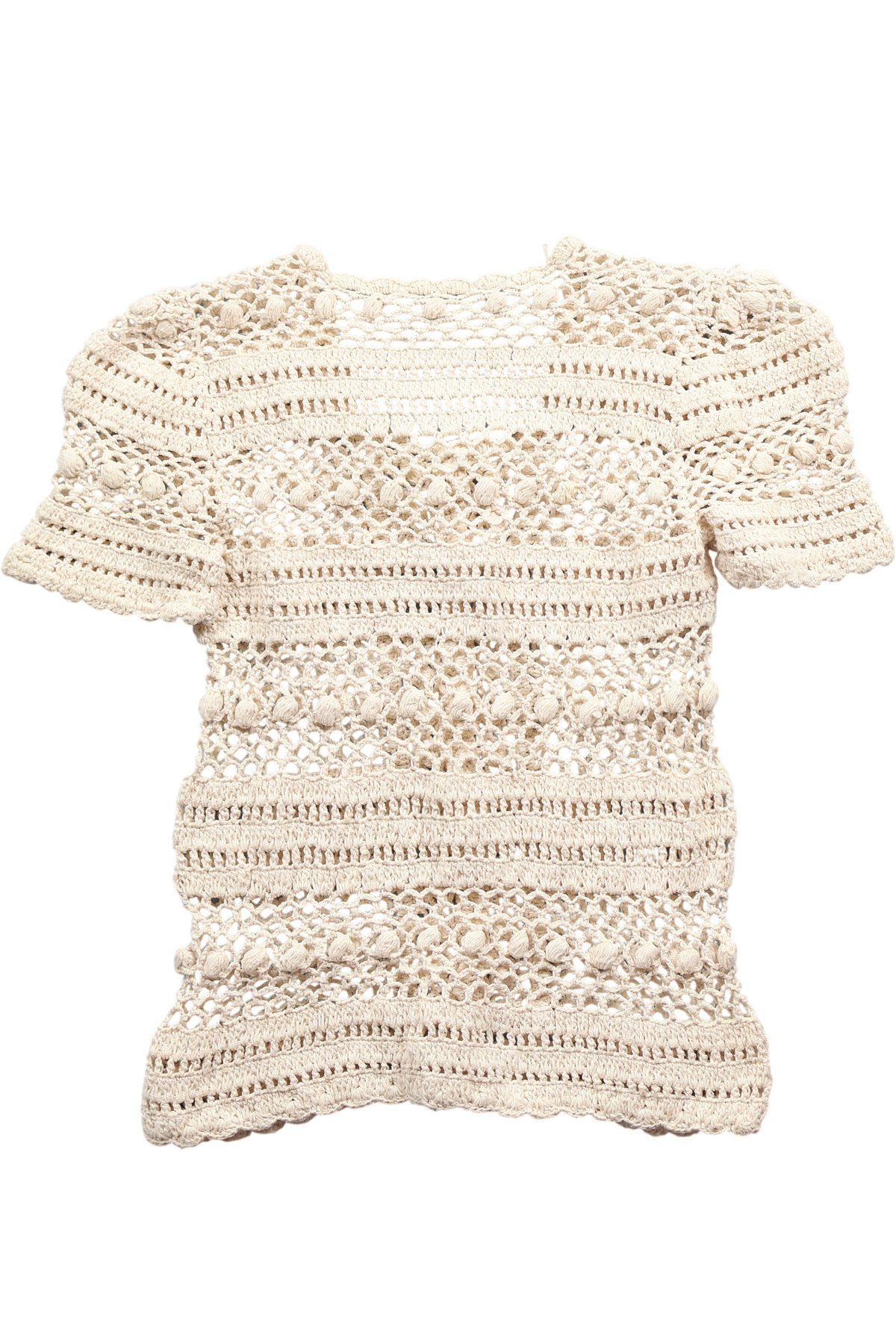 1960s Crochet Short Sleeved Top in Beige.