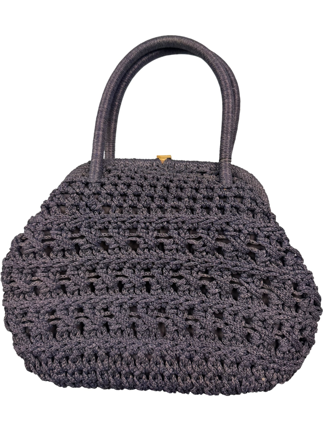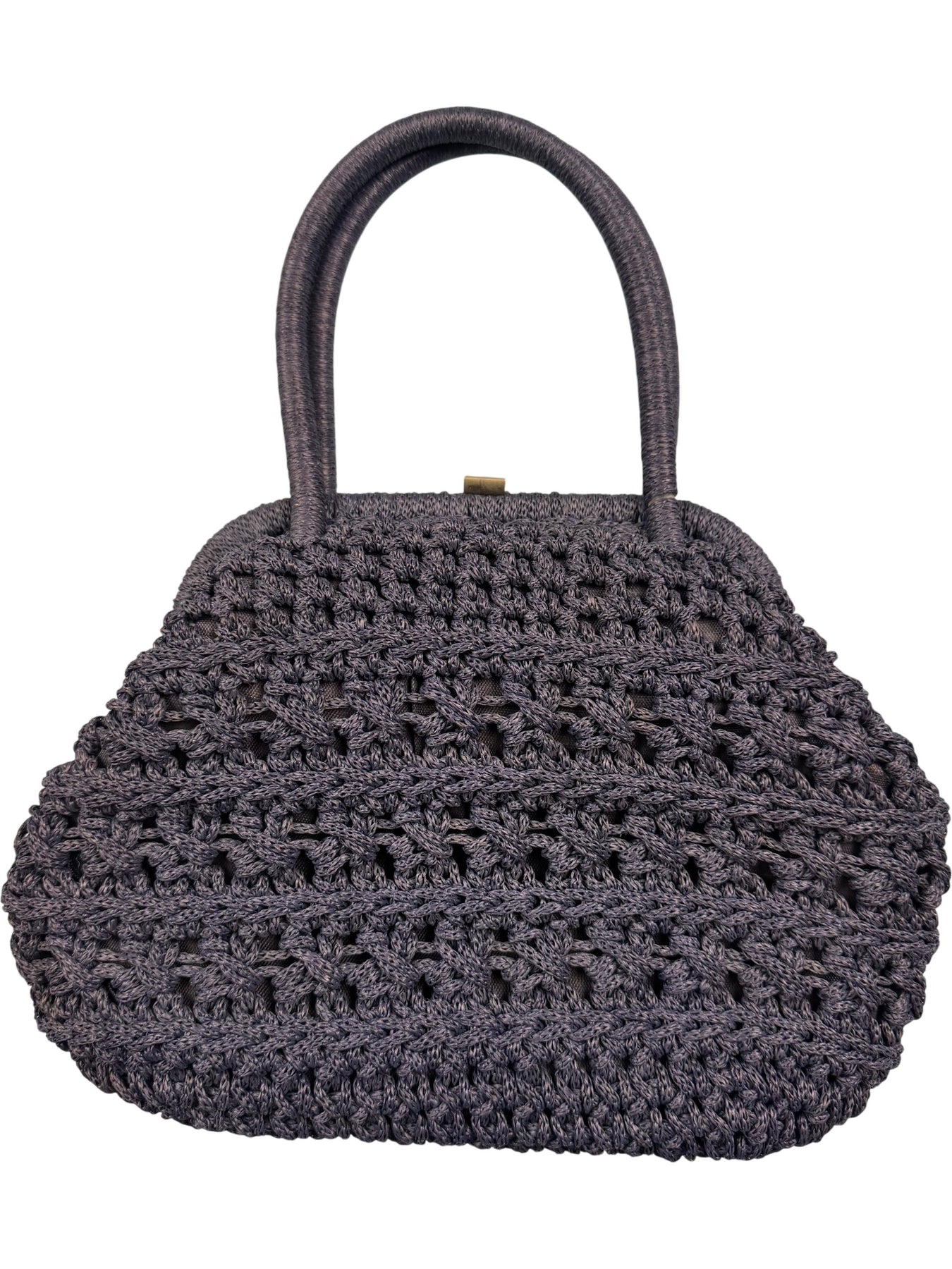 Handcrafted crochet design with sturdy handles. Features a spacious interior for essentials. Secure clasp closure at the top.