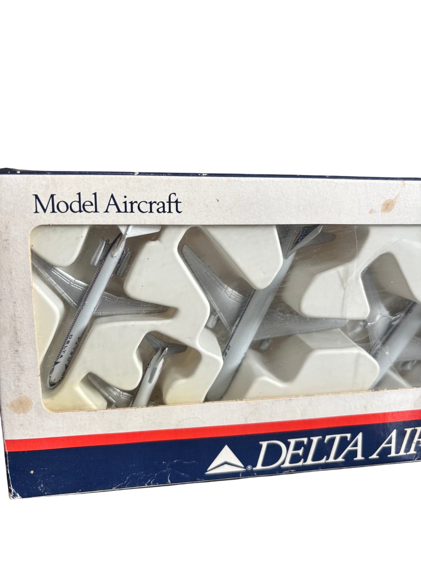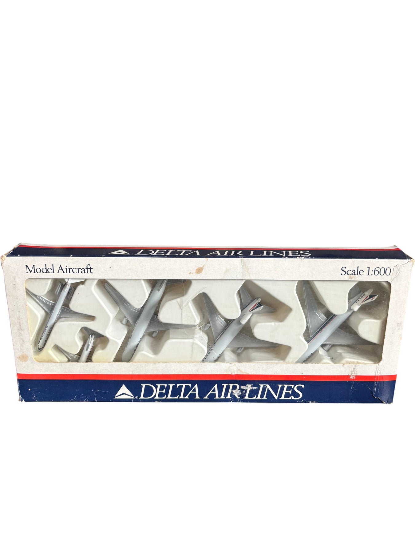 Delta Air Lines model aircraft set featuring four different aircraft models. Scale 1:600. Includes MD 11 Tristar L-1011 MD 88 Boeing 767-300 and Boeing 737-300.