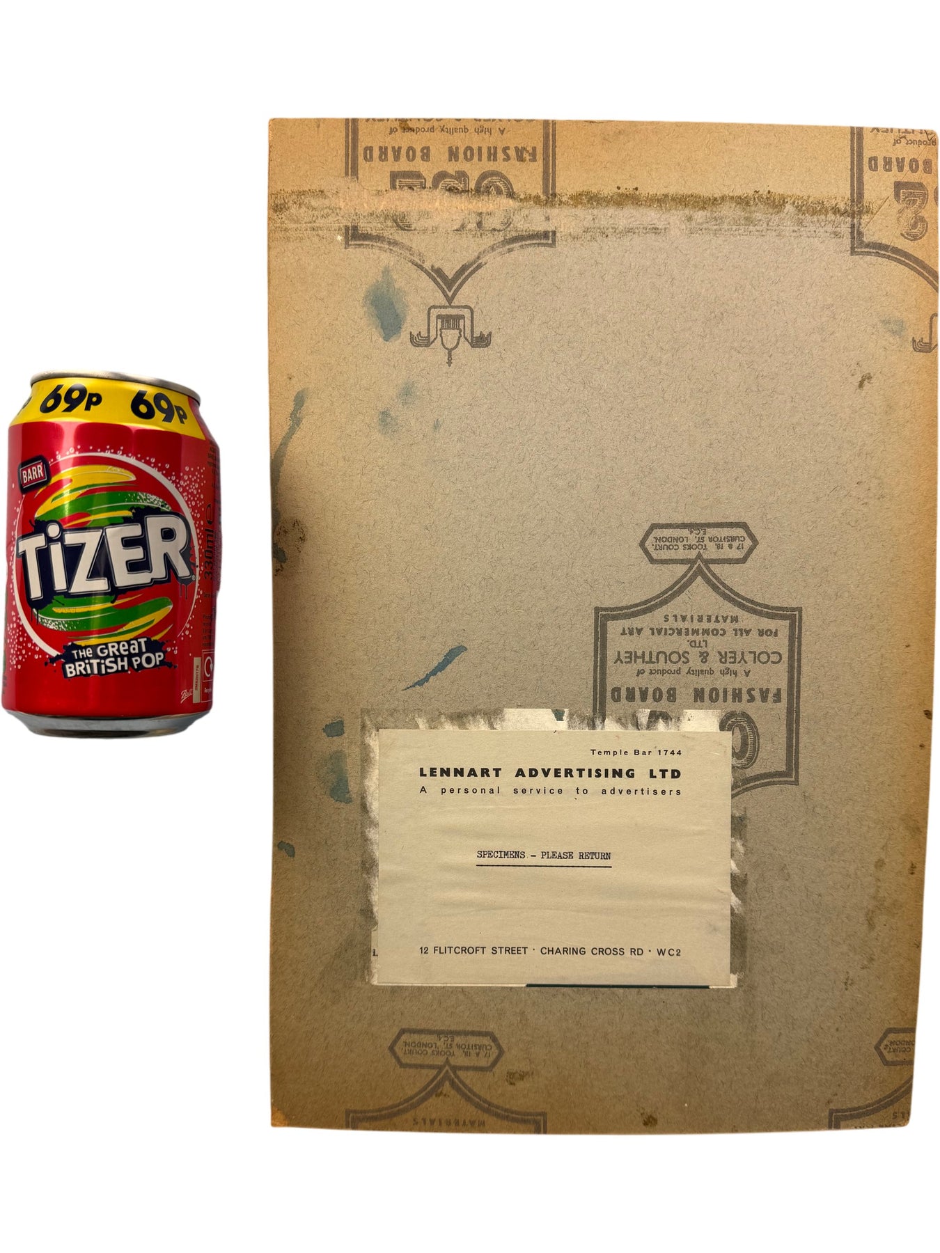 Original illustration board featuring vintage baby knitwear designs. Includes various styles and colours, showcasing patterns from the period. Used as an advertising sample by Lennart Advertising Ltd. Belinda Lyon Design