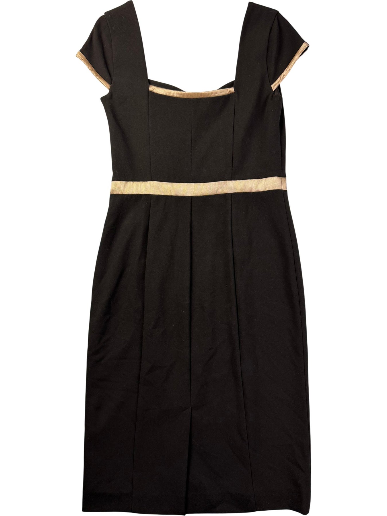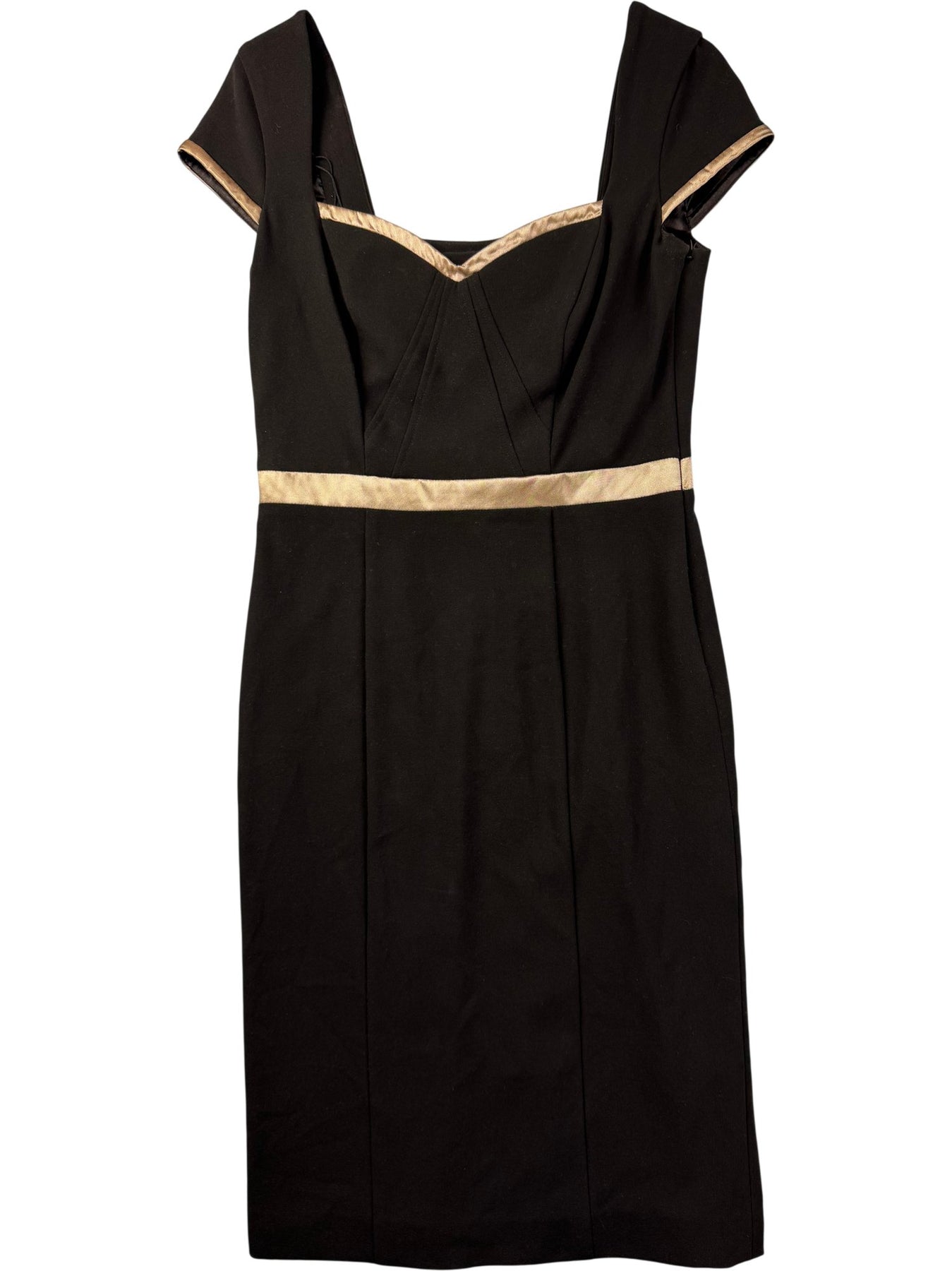 This dress features a short sleeve design with contrasting beige trim. Made from a blend of polyester, viscose, and elastane for a comfortable fit. It has a sweetheart neckline and is lined for additional comfort.