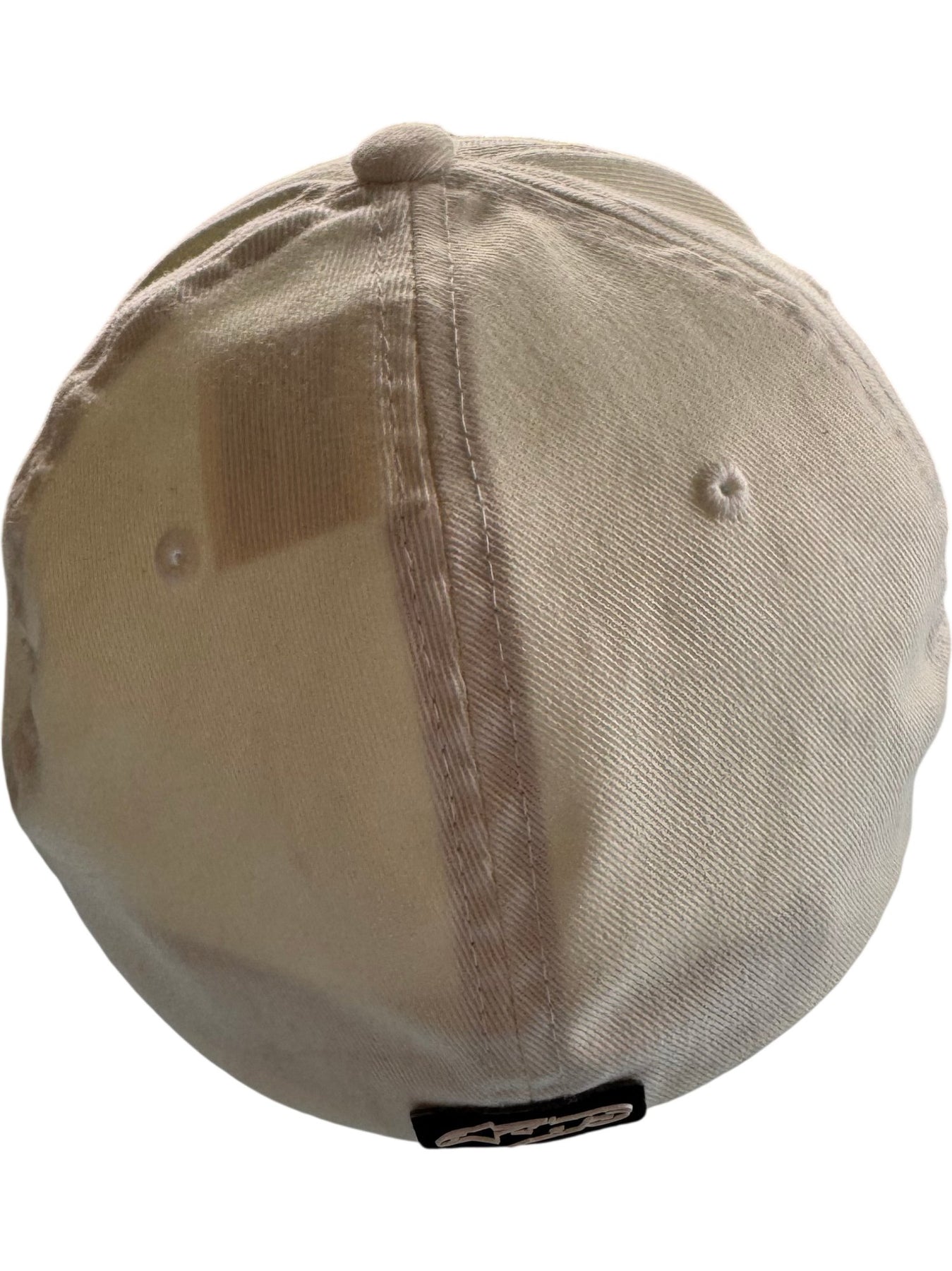 Beige cap featuring Alpinestars logo on the front. Made of 63% polyester, 34% cotton, 3% P.U. spandex. Includes a Flexfit band for a secure fit. Designed with signature on the brim.