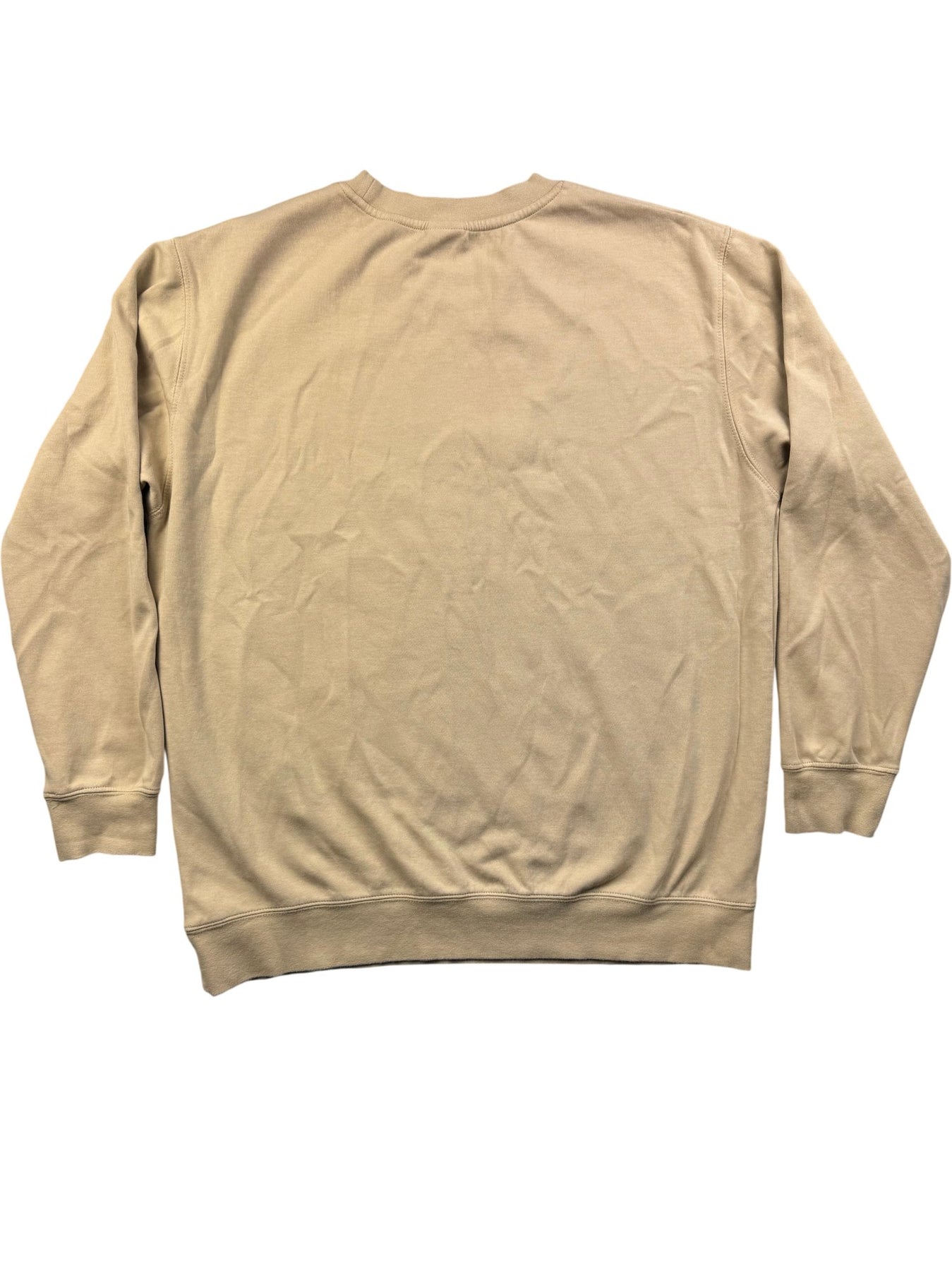 Beige sweatshirt with artistic graphic print featuring a pumpkin motif and text. Crew neckline design. Made of 80% cotton and 20% polyester for a comfortable fit.