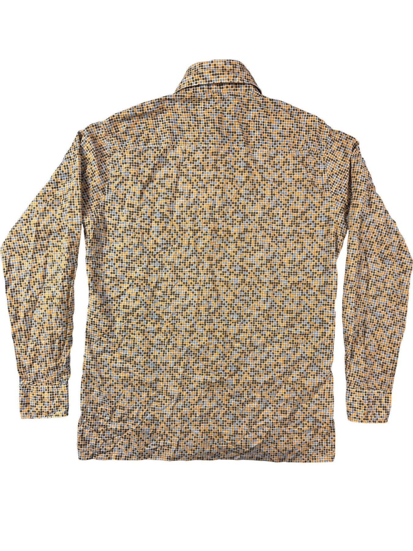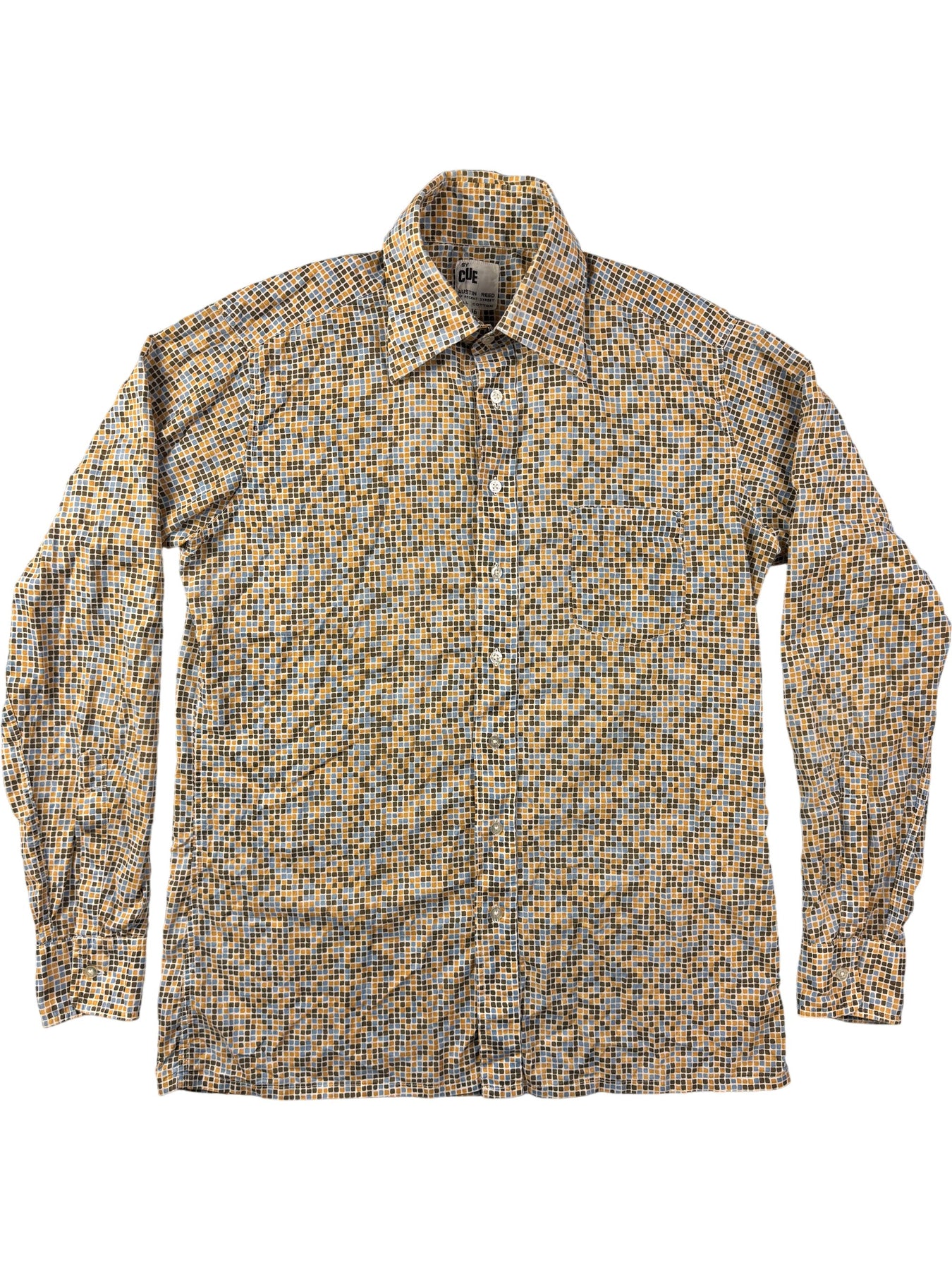 Cotton shirt with a checkered pattern. Features long sleeves and a classic collar with button-up front. Label shows brand as Austin Reed by Cue.