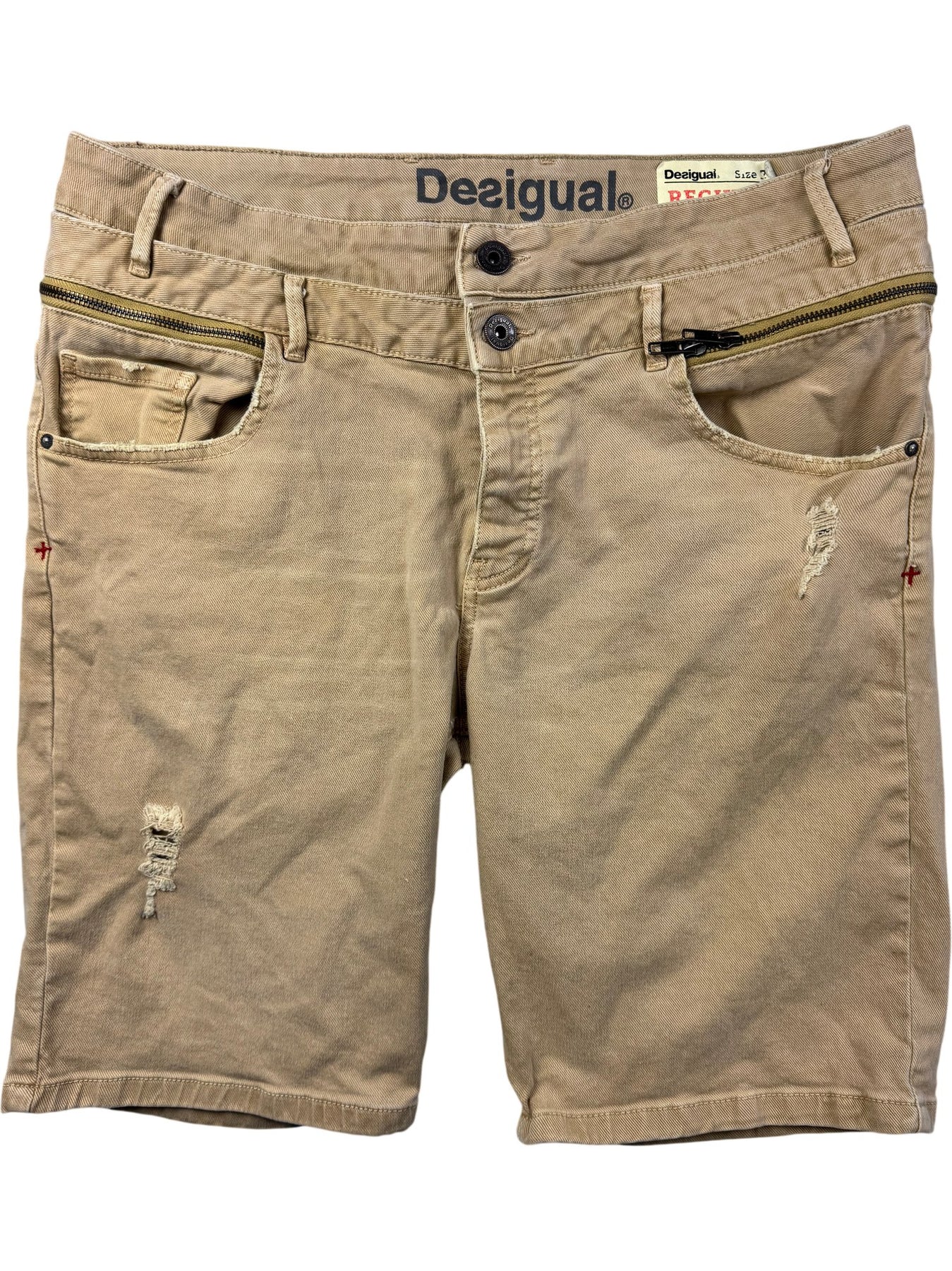 Desigual shorts with a distressed style and zipper pockets. Made from a cotton blend for comfort and durability.