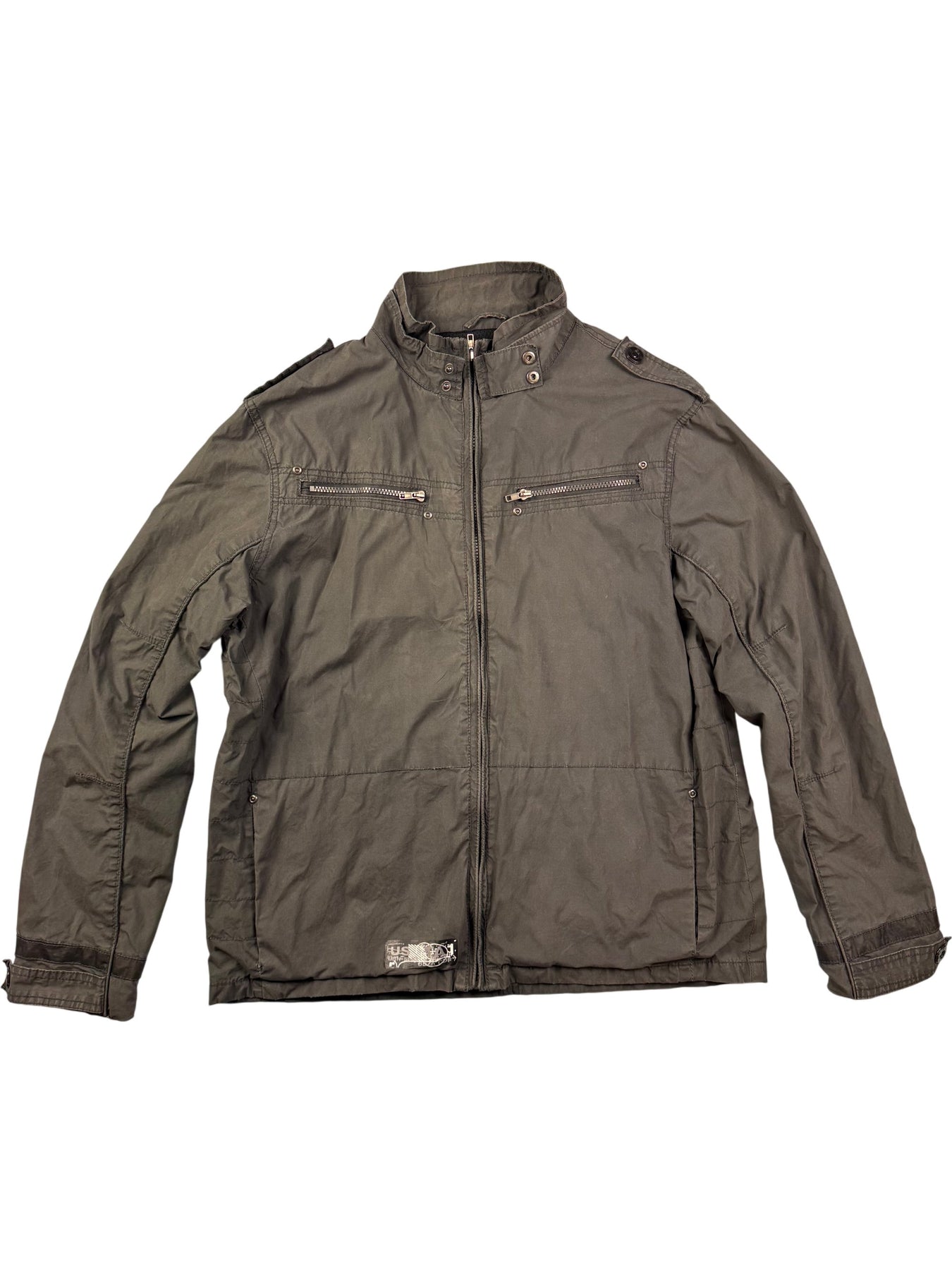 Men's jacket made from 100% cotton with polyester lining. Features a zip closure and multiple pockets for practicality. Includes a stand-up collar and shoulder epaulettes.