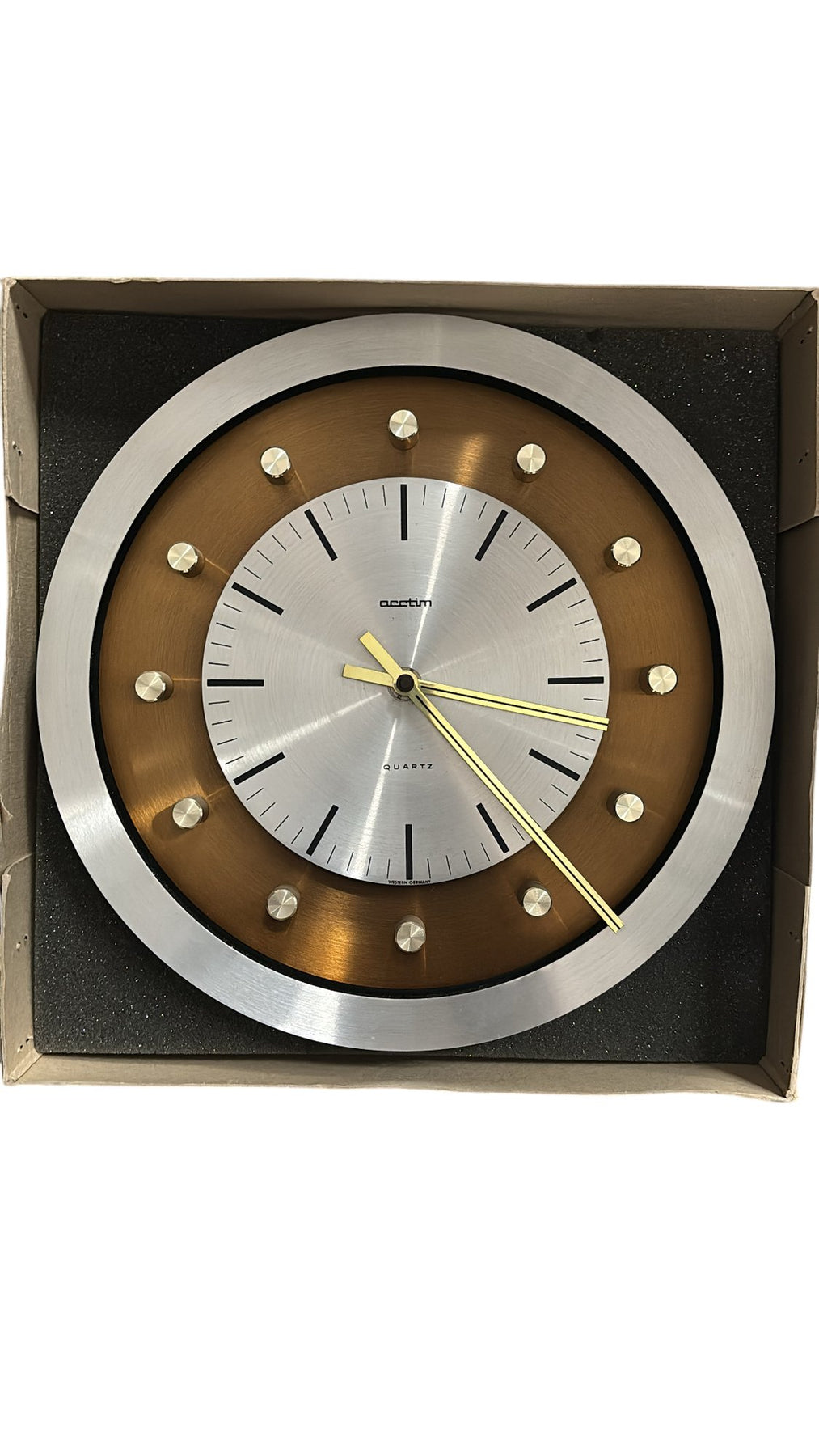 West German Acctim Quartz Wall Clock Brushed Metal Finish Modern Design
