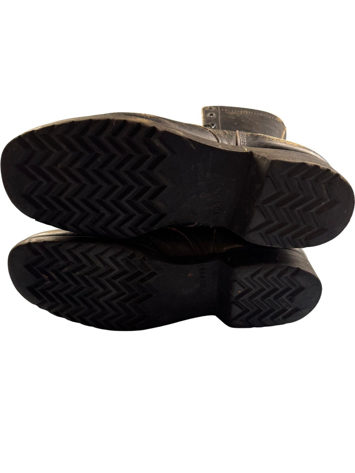 Sturdy black leather construction with lace-up closure. Durable rubber soles with deep tread for enhanced traction.