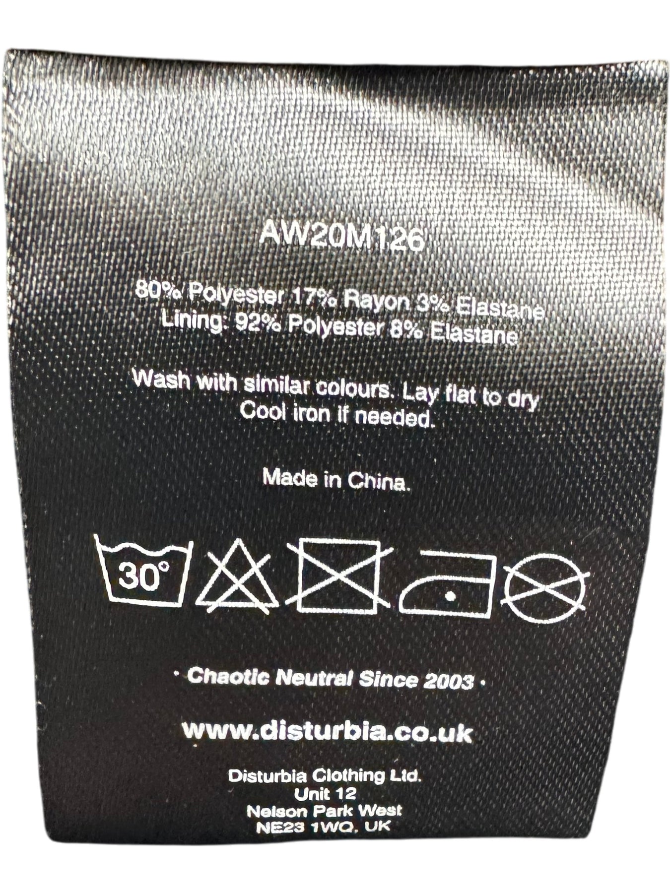 Plaid mini skirt from Disturbia featuring a green and black checkered pattern. Made from a fabric blend of 80% polyester, 17% rayon, and 3% elastane with a lining of 92% polyester and 8% elastane. Includes a button closure.