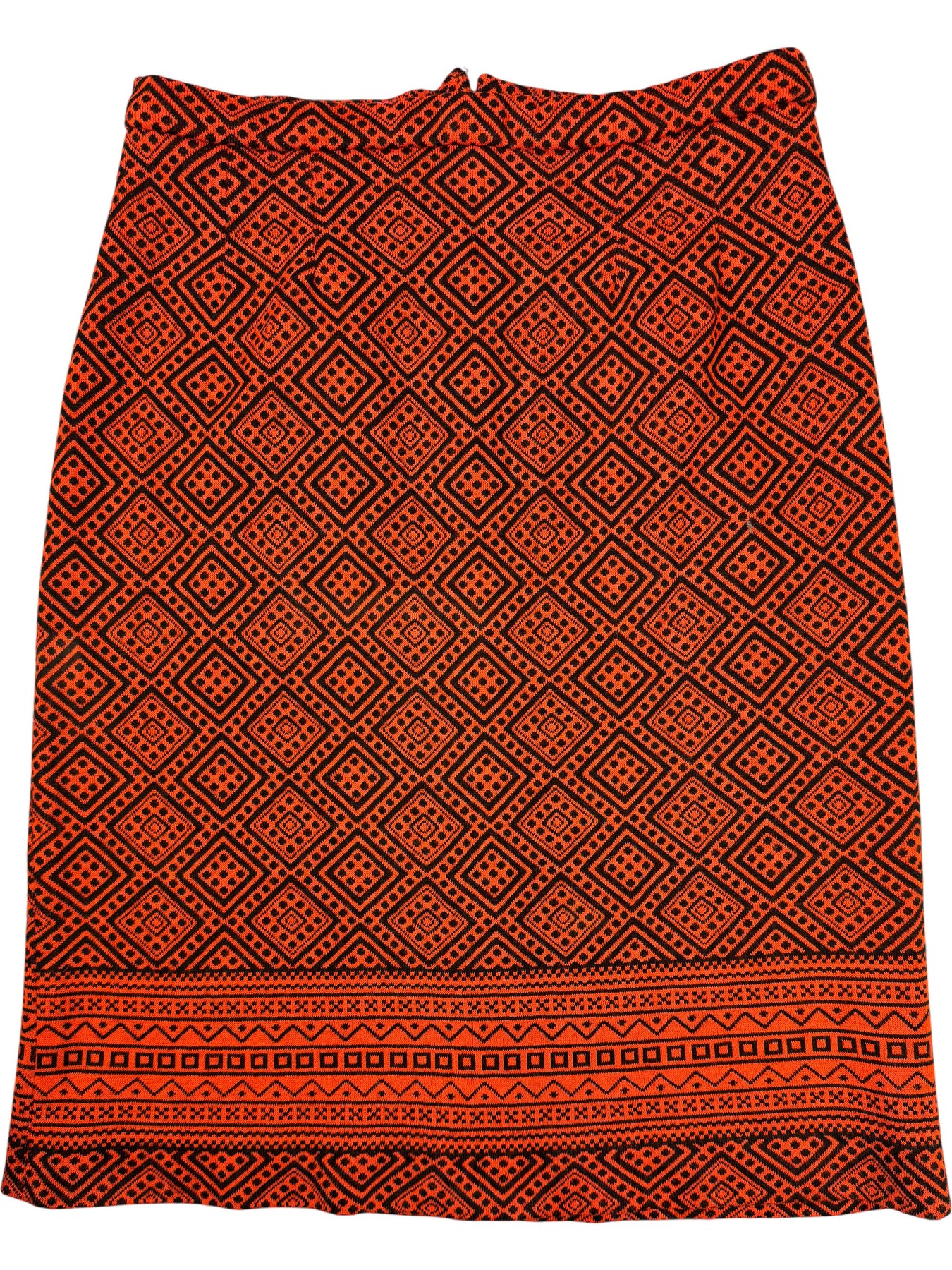 Louis Feraud knit skirt featuring an all-over geometric pattern. Made in England by Rembrandt. Includes a back zipper closure.
