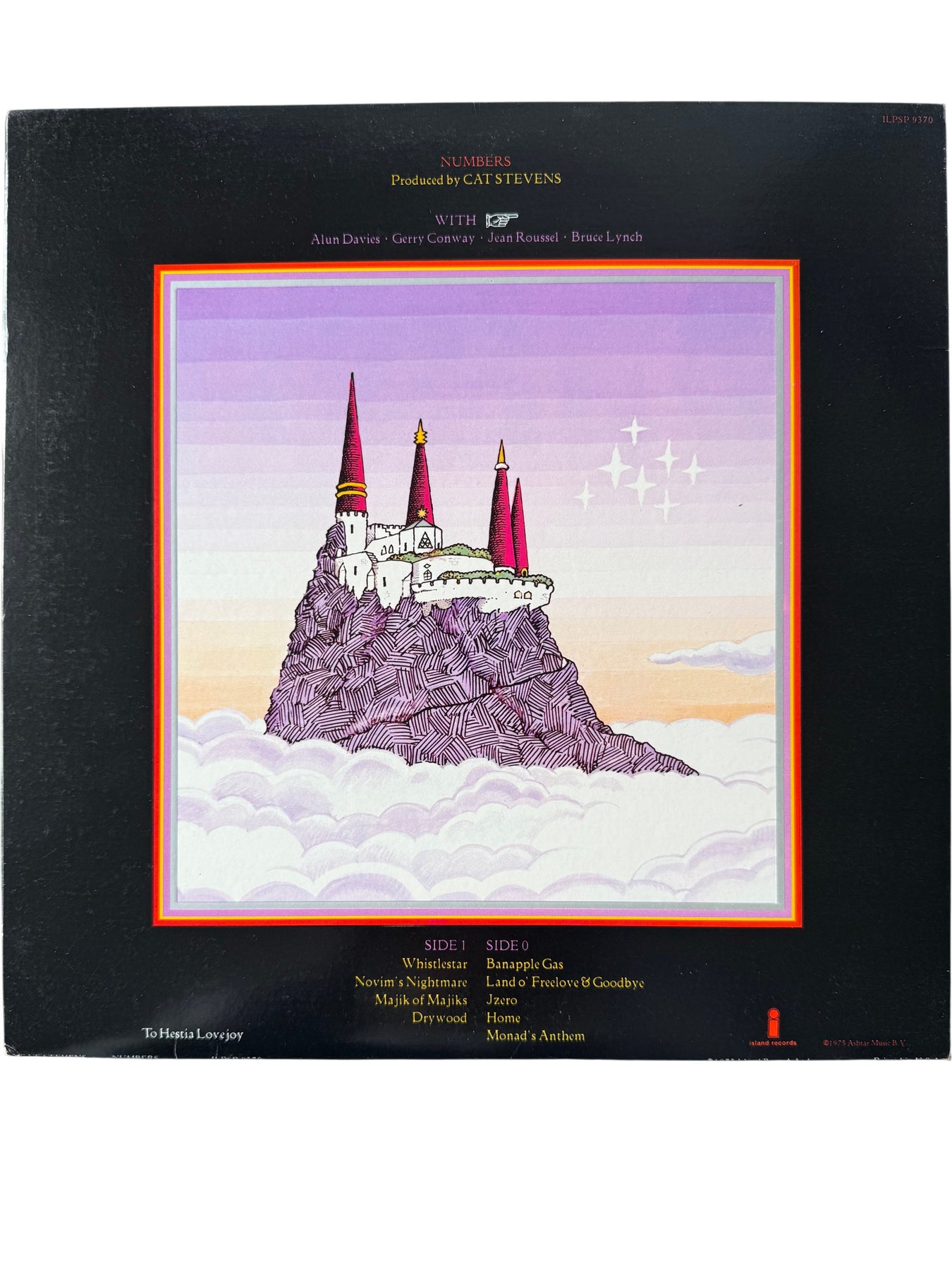 This is a 'Numbers' LP by Cat Stevens, released in 1975. It features tracks like 'Whistlestar' and 'Banapple Gas'. The album is produced by Cat Stevens and published by Island Records.