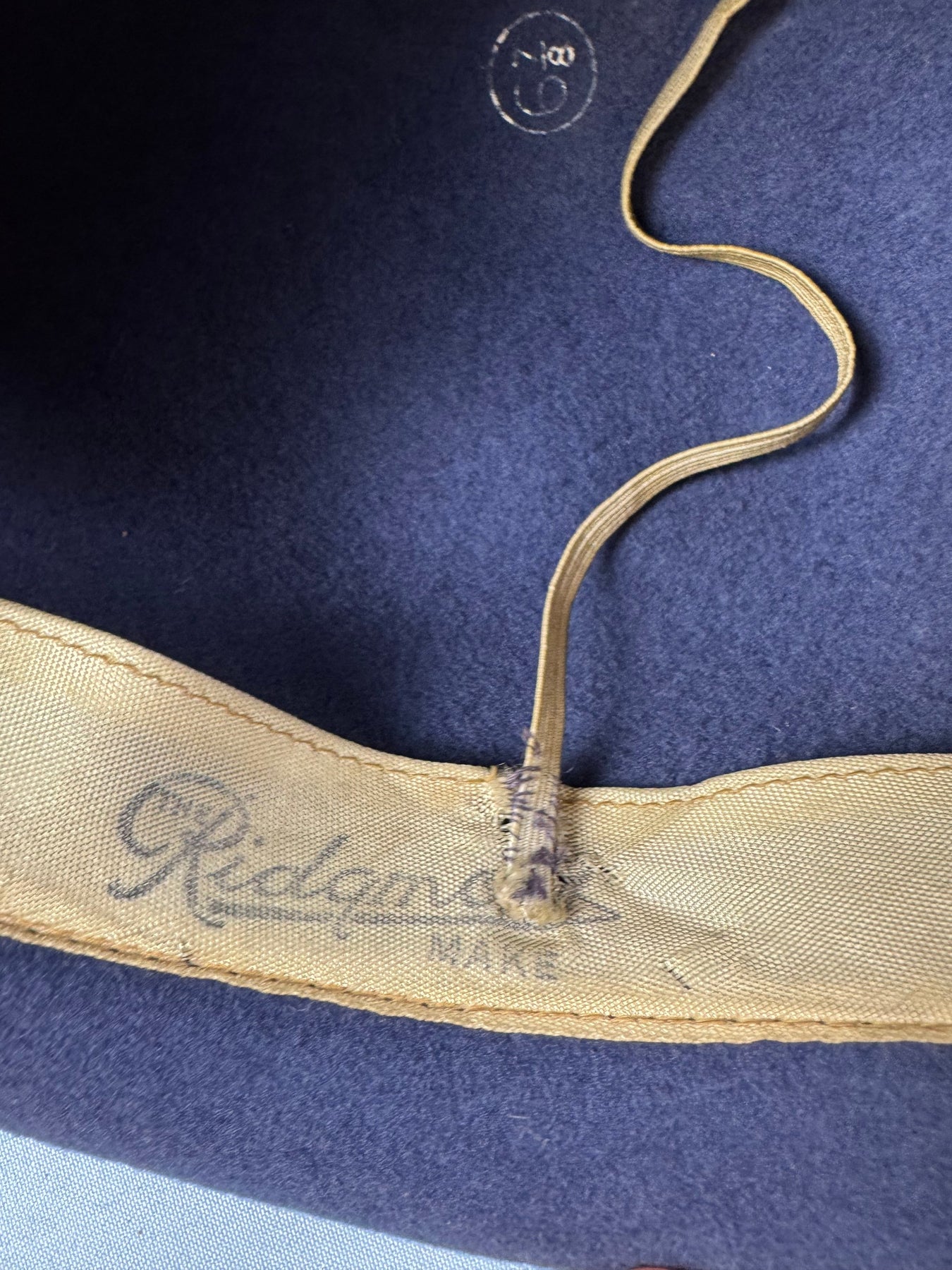 Classic Blue Wool Bowler Hat with Ribbon Detail