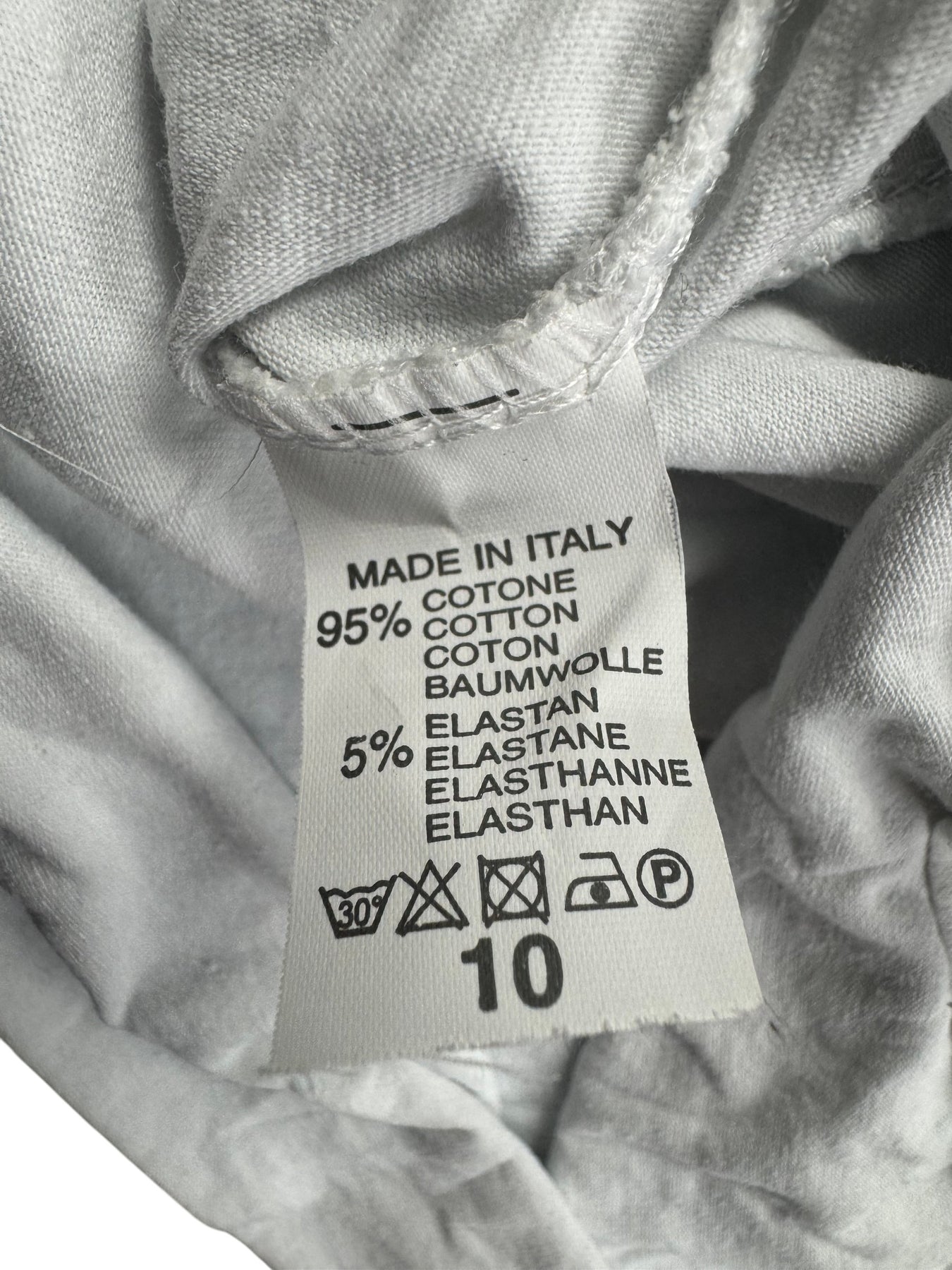This white T-shirt features a prominent TikTok logo on the front. It is made of 95% cotton and 5% elastane for a comfortable fit. The item is made in Italy, showcasing quality craftsmanship.