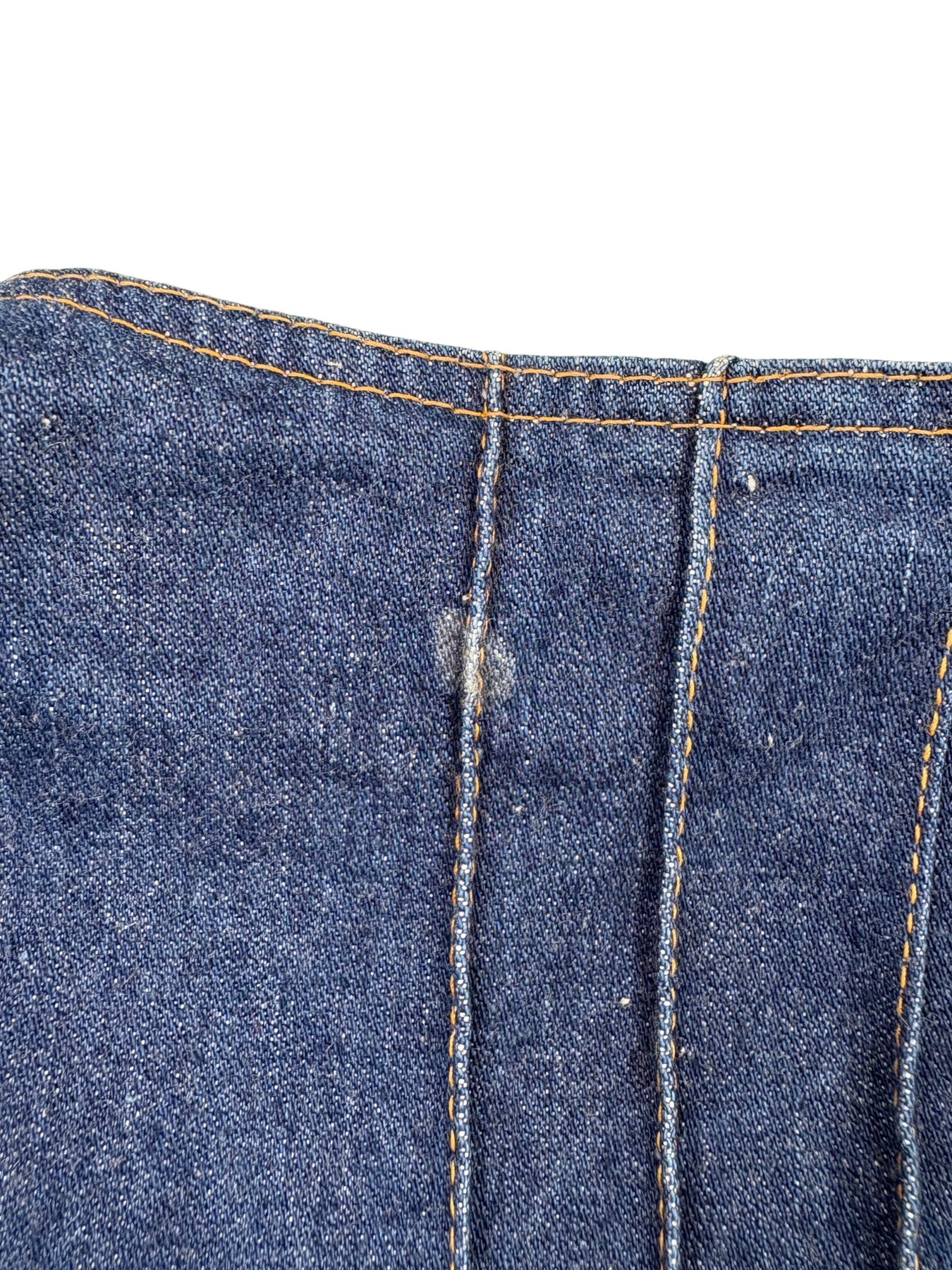 Denim waistcoat by Falmers featuring a button-up front. Includes a small chest pocket and two front flap pockets. Contrasting stitching highlights the design.