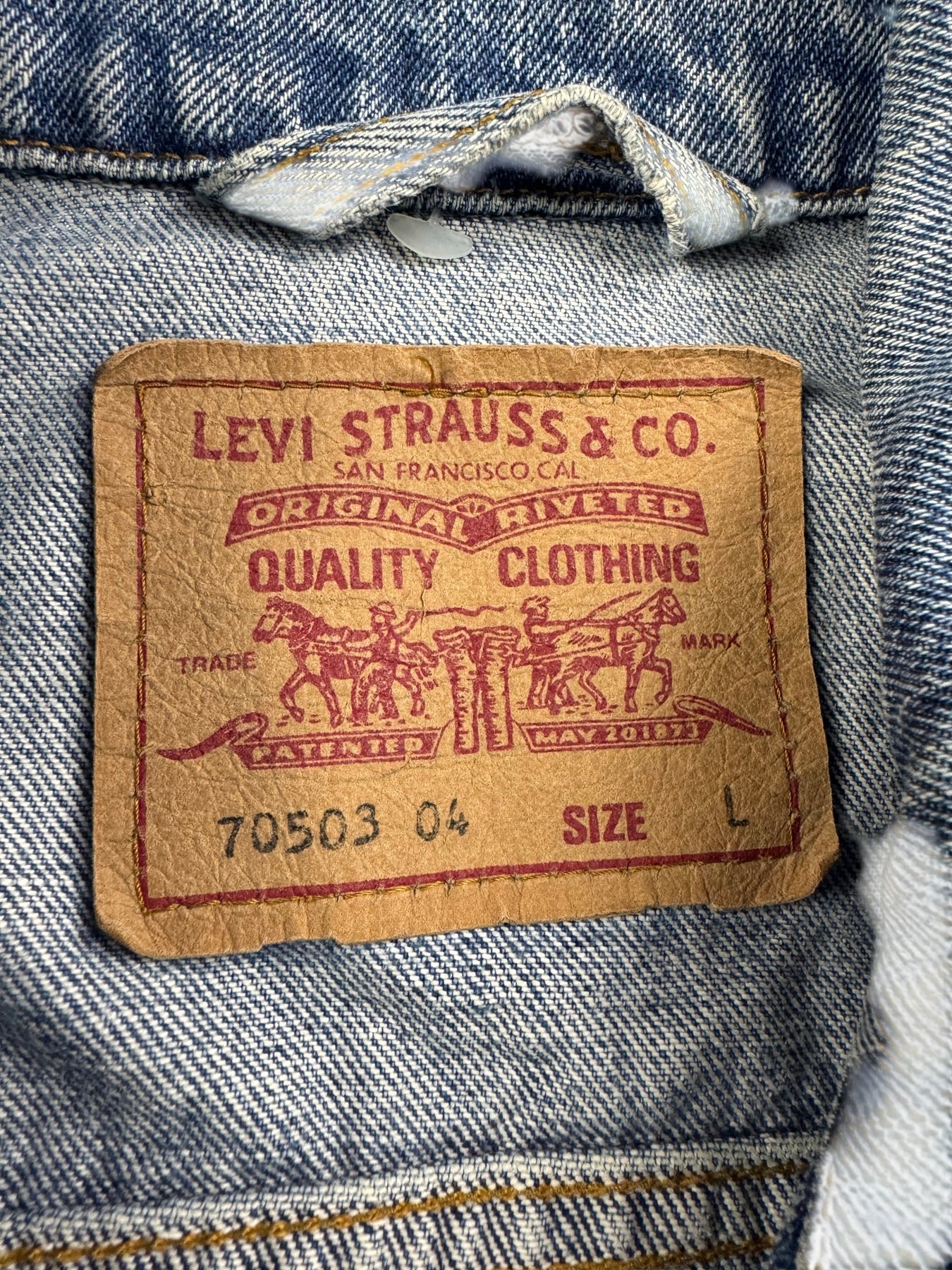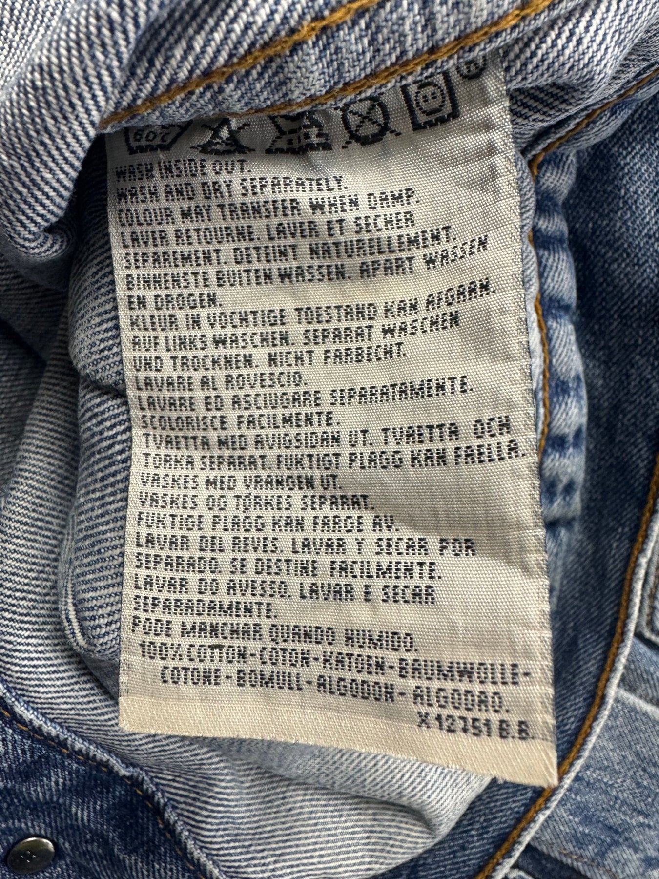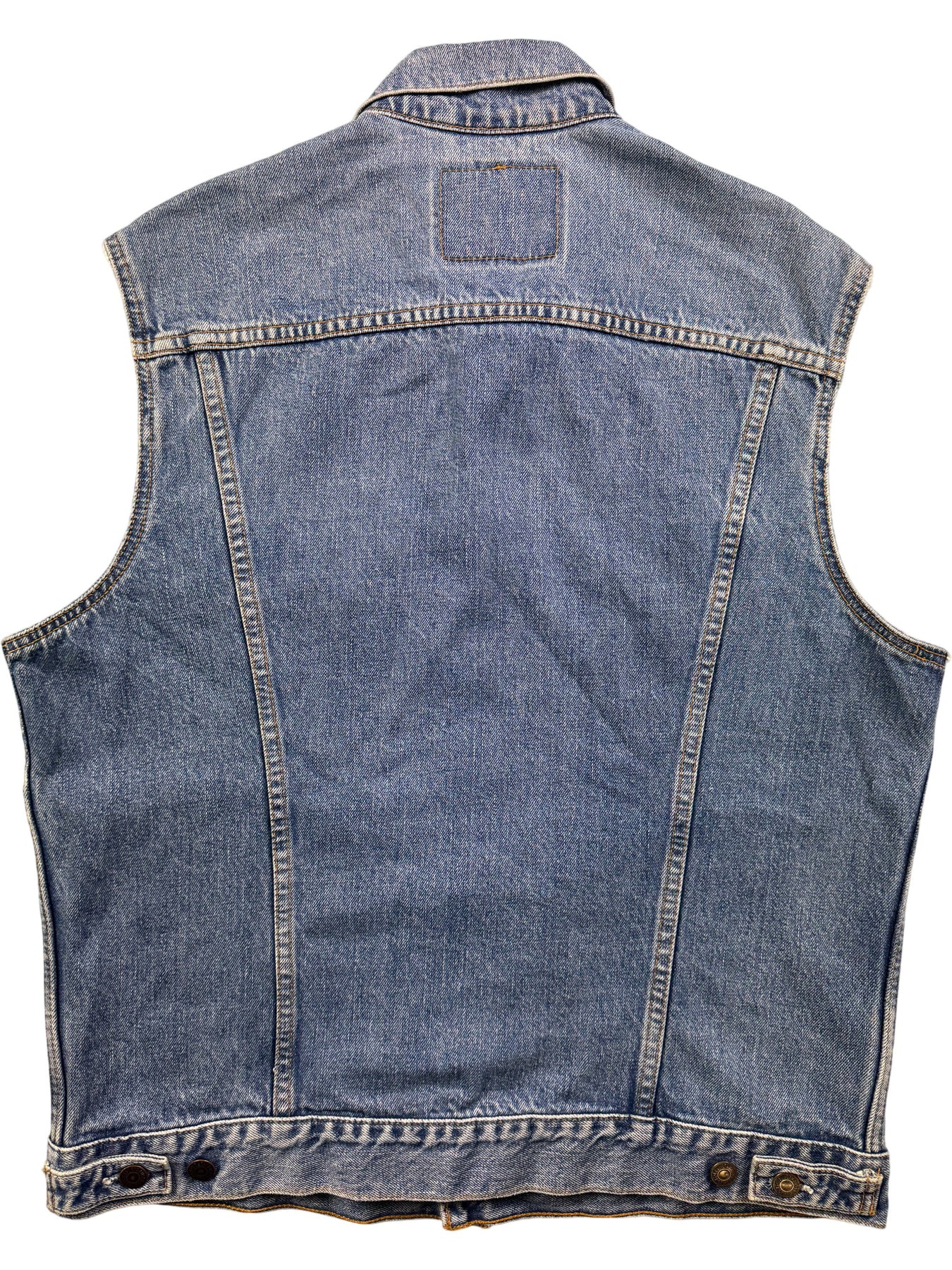 Denim vest from Levi Strauss with button closure and two front chest pockets. Features a classic collar and is made of 100% cotton.