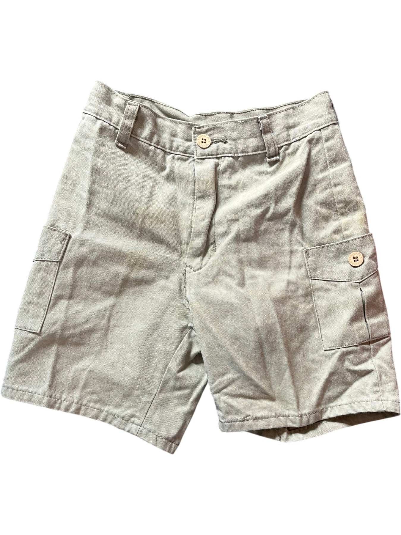 These BHS cargo shorts are made from 100% cotton, featuring multiple pockets for practical storage. Made in Hong Kong, they offer a comfortable fit for casual wear.