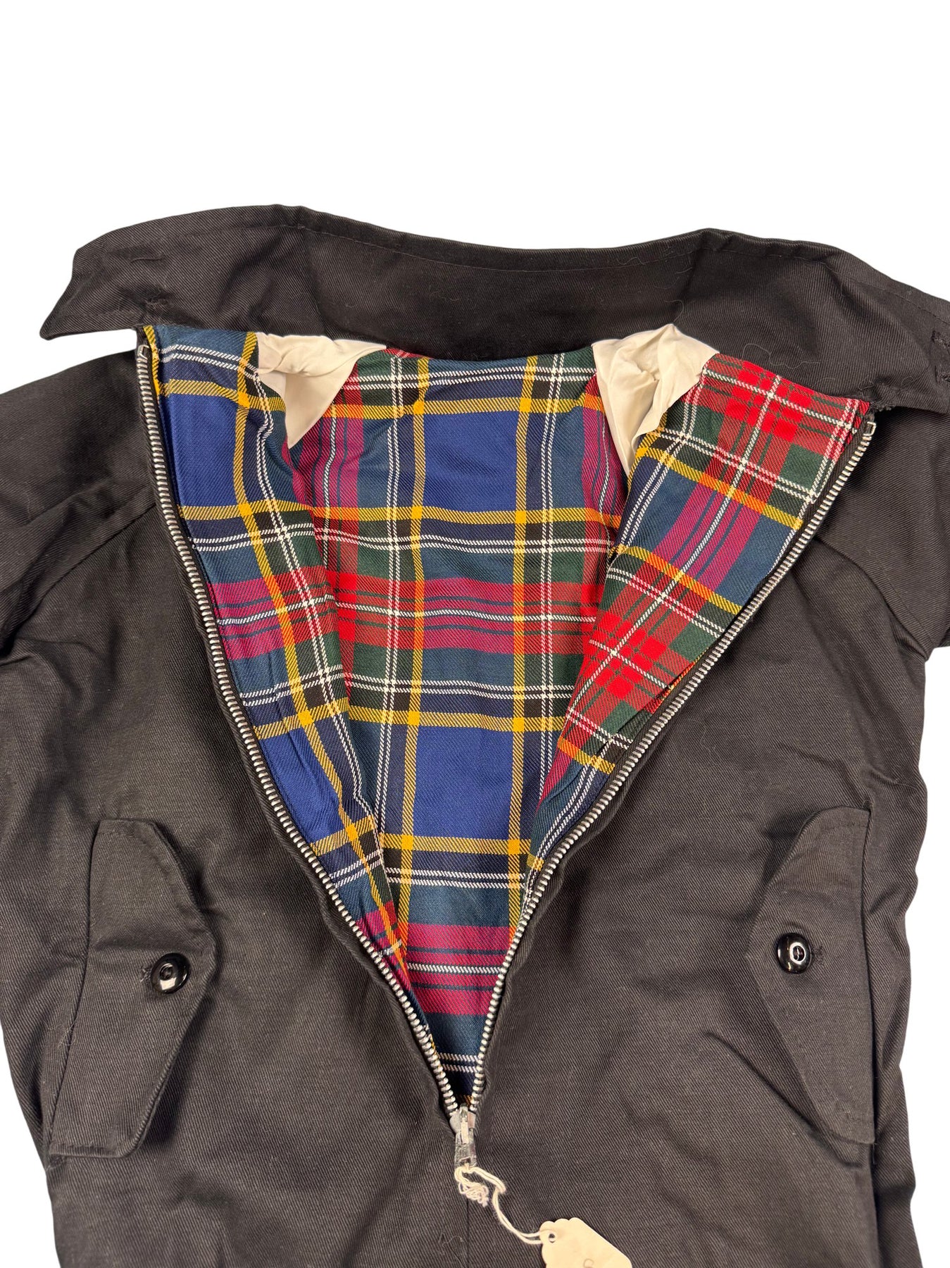 1980s Black Bomber Jacket With Tartan Lining - Age 8/9