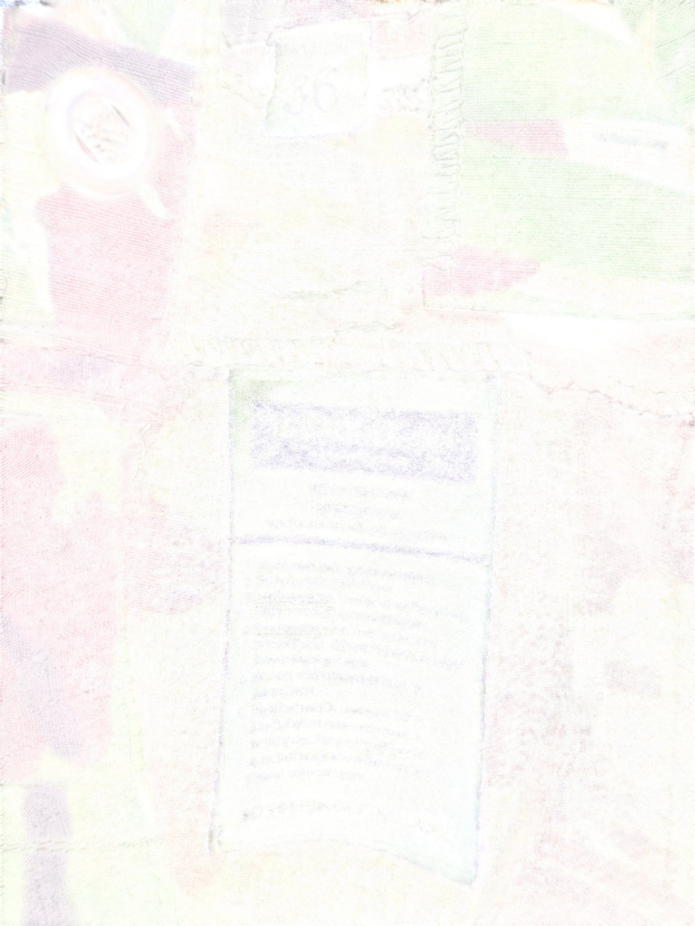 Camouflage cargo pants with adjustable waist and elastic hem. Made from 65% polyester and 35% cotton ripstop fabric for durability. Features multiple pockets for practicality.