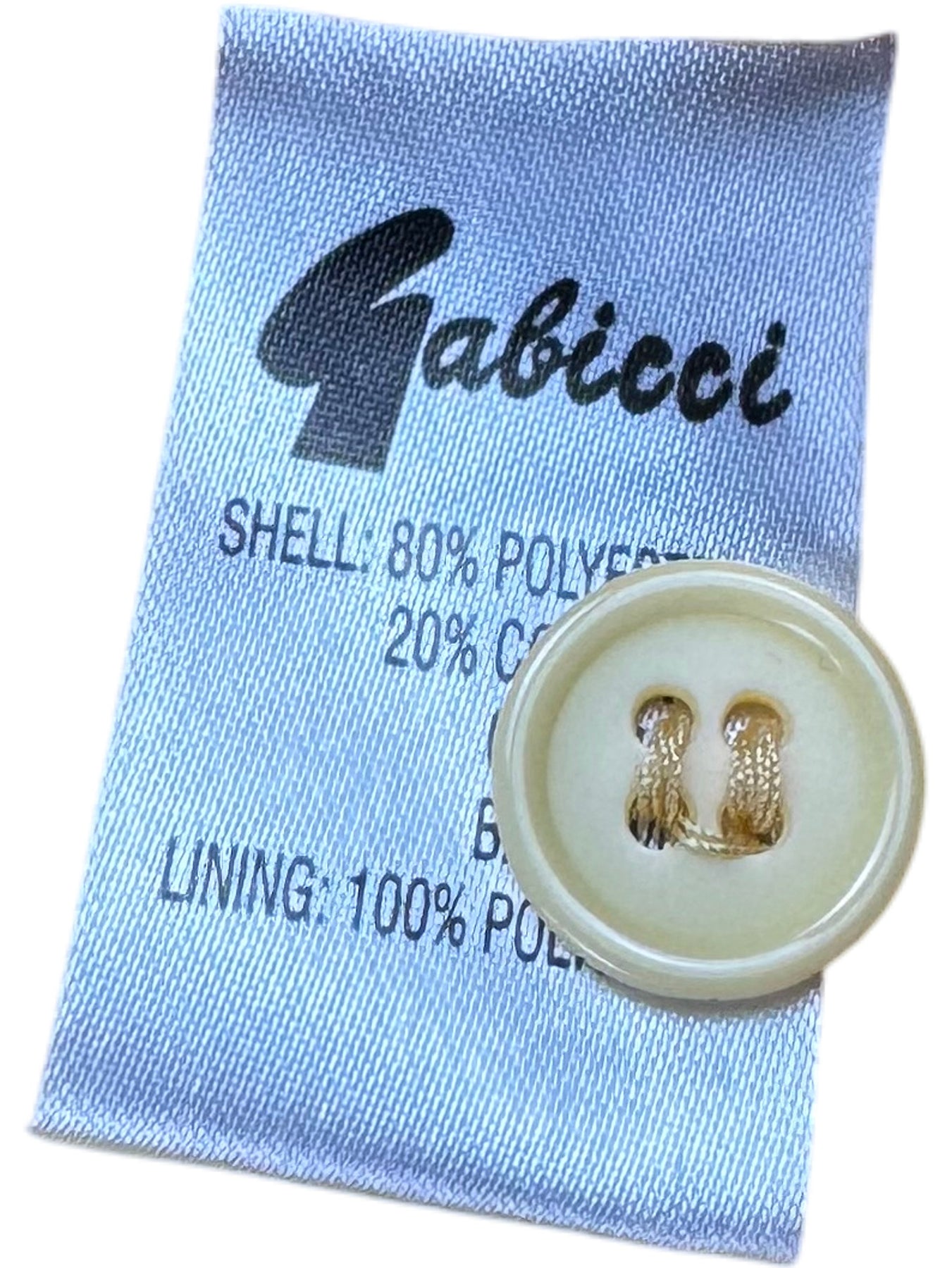 This Gabicci jacket features a full zip closure and is made of 80% polyester and 20% cotton with a 100% polyester lining. It is designed with long sleeves and two front pockets.
