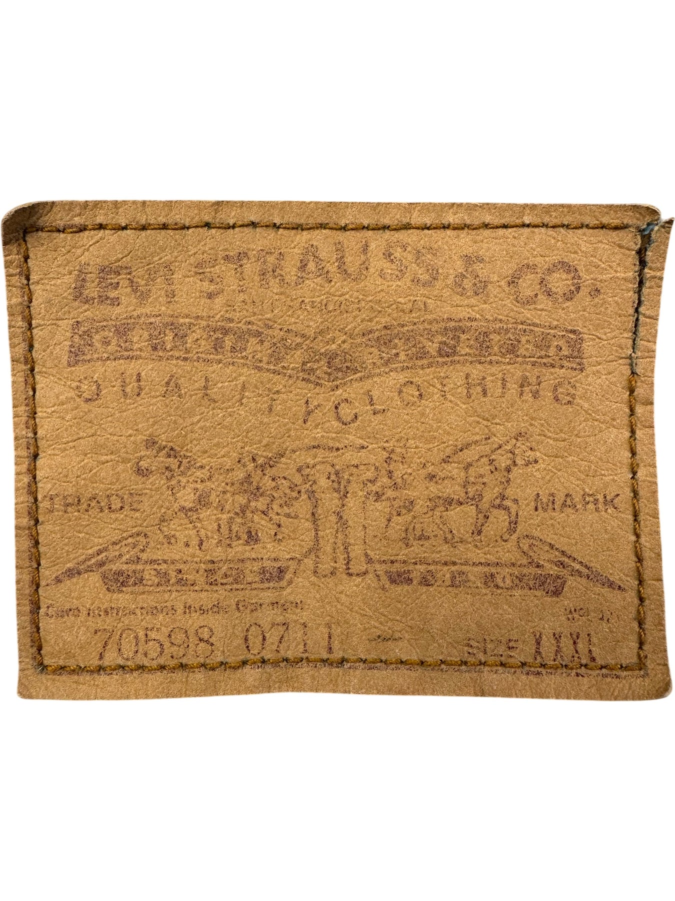 Classic Levi's denim trucker jacket with button front closure, two chest pockets, and adjustable side tabs. Made from durable cotton denim fabric.