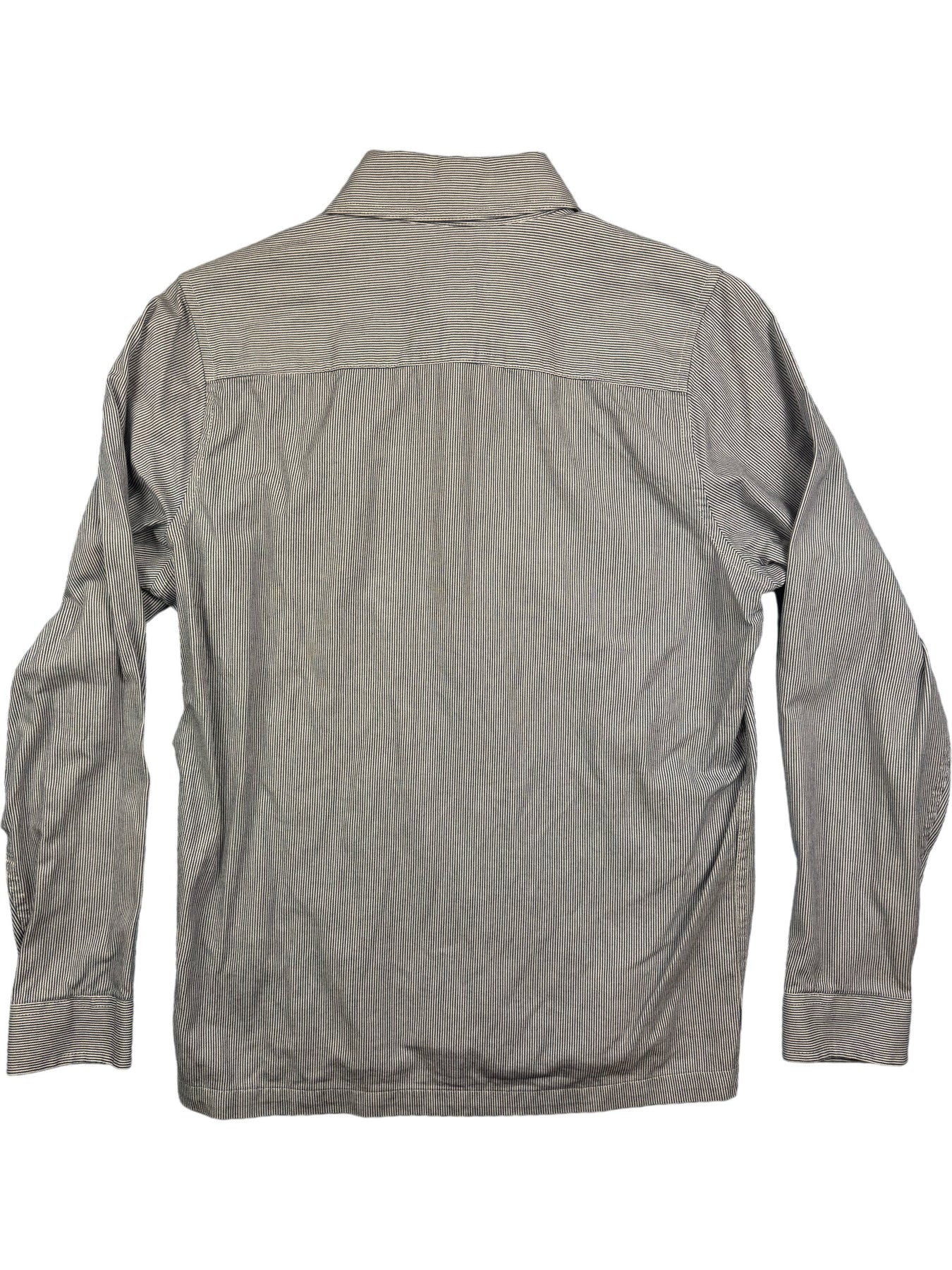 Men's long sleeve shirt with button front closure and a classic collar. Features include a single chest pocket and striped pattern. Made from 100% cotton.
