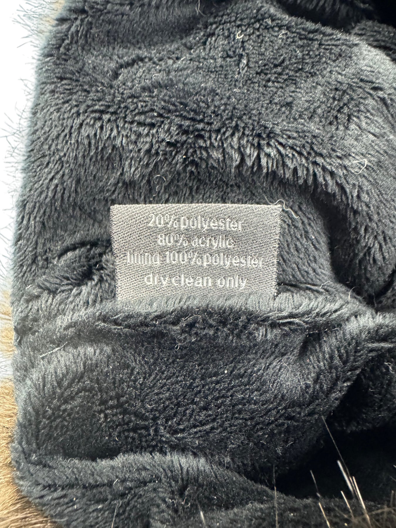 This hat features a faux fur exterior made from 20% polyester and 80% acrylic. The lining is 100% polyester, providing added comfort. It is made in England and recommended for dry clean only.