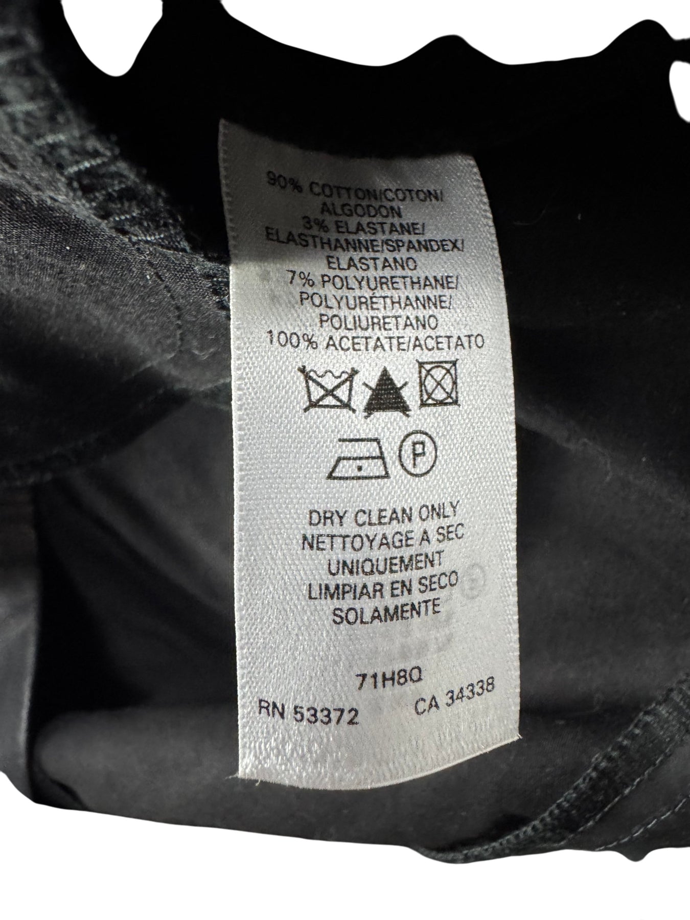 Black strapless dress with pleated front design. Made of 90% cotton, 3% elastane, and 7% polyurethane. Features a back zipper closure.