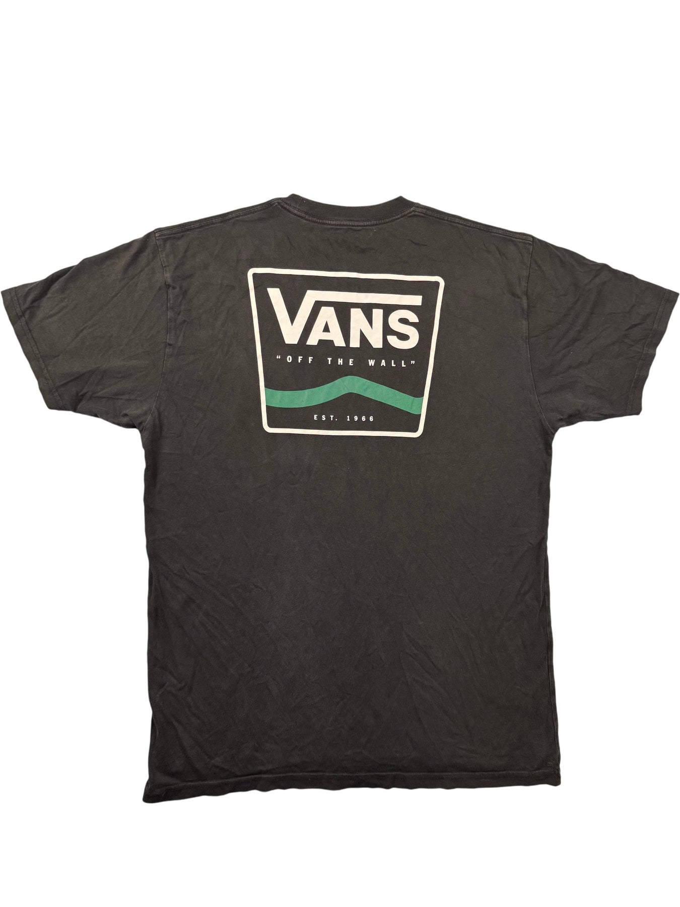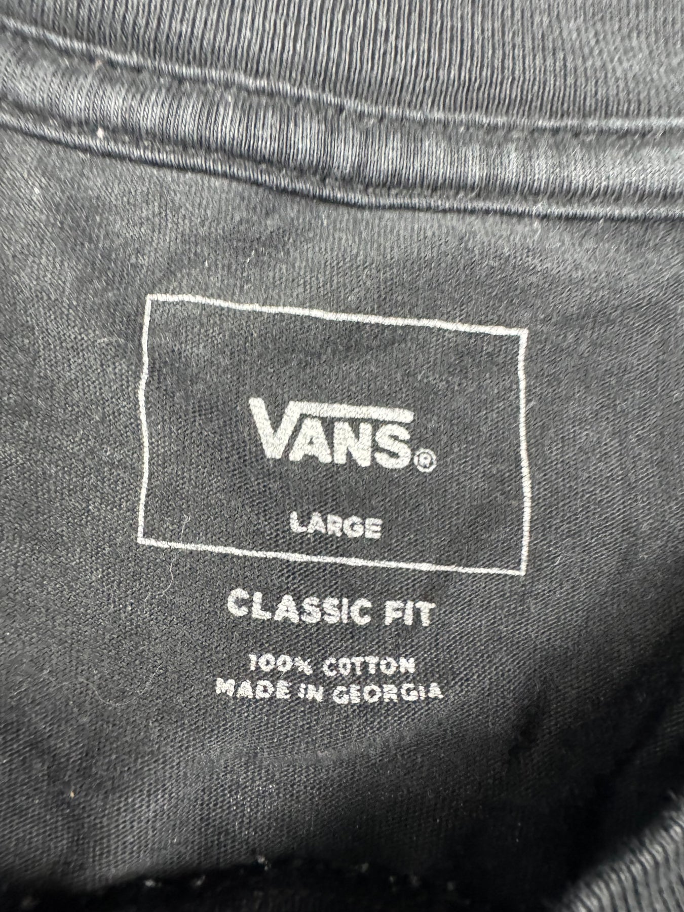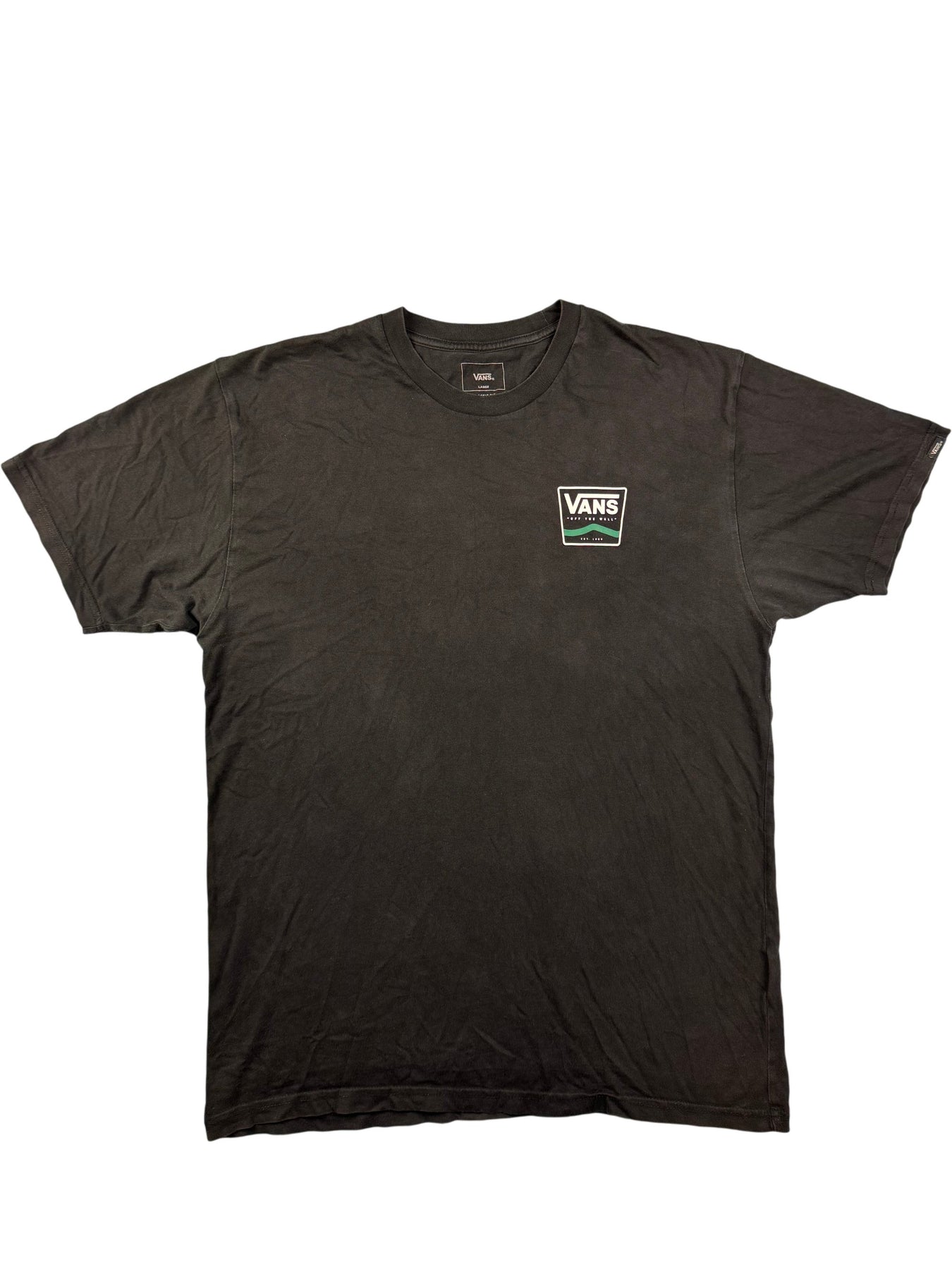 Black Vans t-shirt with front and back graphic print. Made from 100% cotton for a classic fit. Crew neckline and short sleeves.