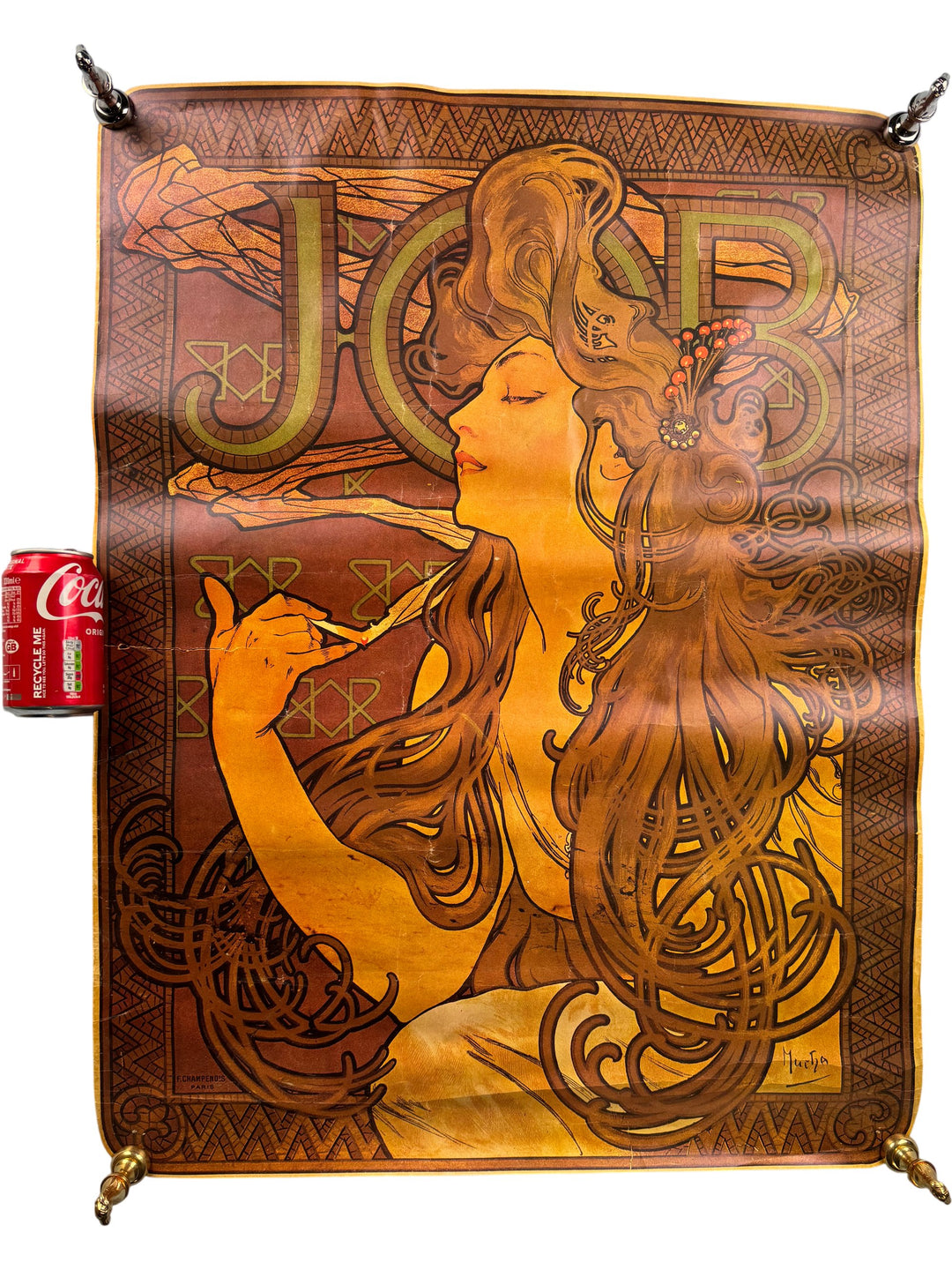 Alphonse Mucha Art Nouveau Lithograph Poster with Elegant Female Figure