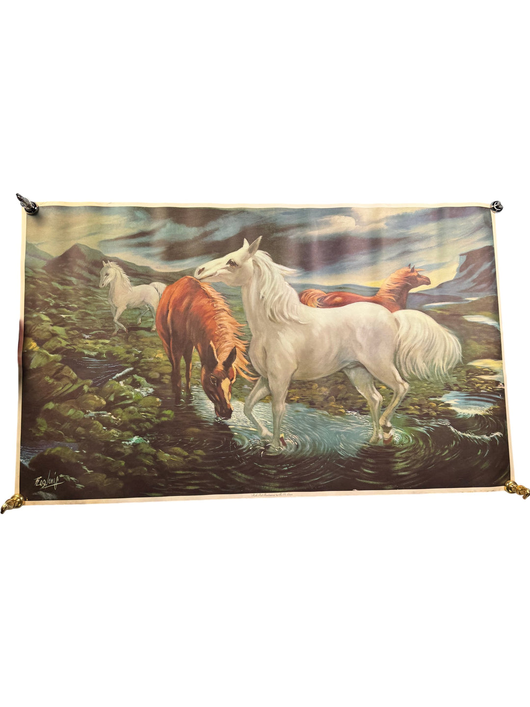 Reg Lewis Vintage Horses Art Print with Scenic Landscape and Vibrant Colours