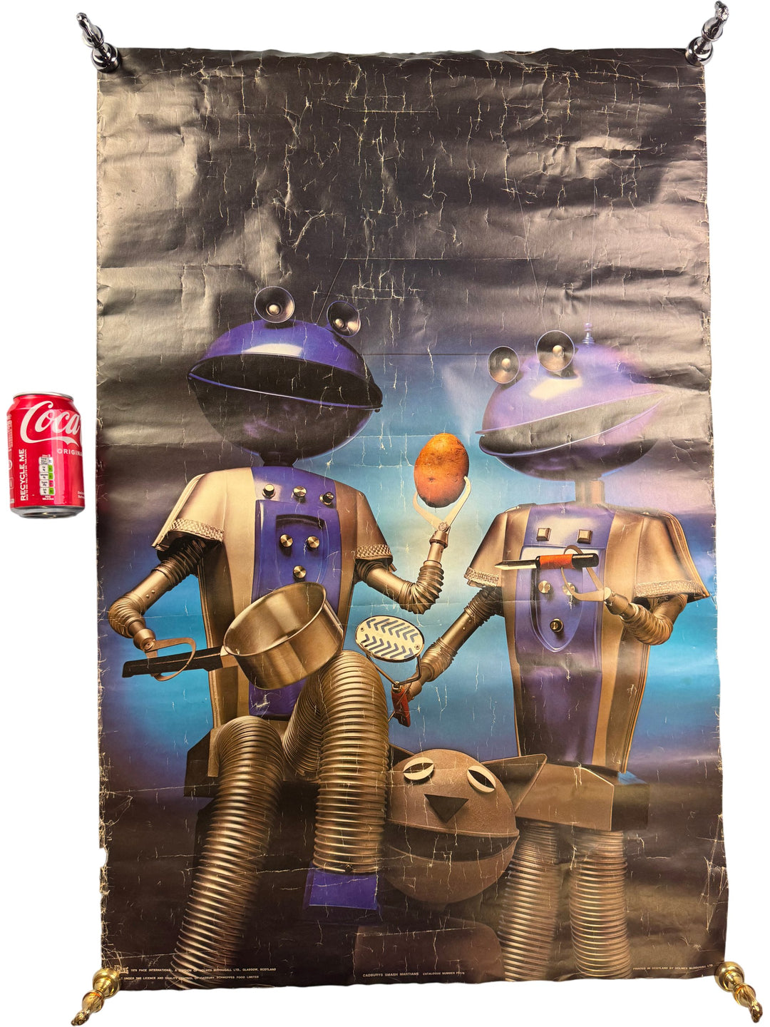Vintage 1970s Temp Work Poster Yellow Comic Style Art
