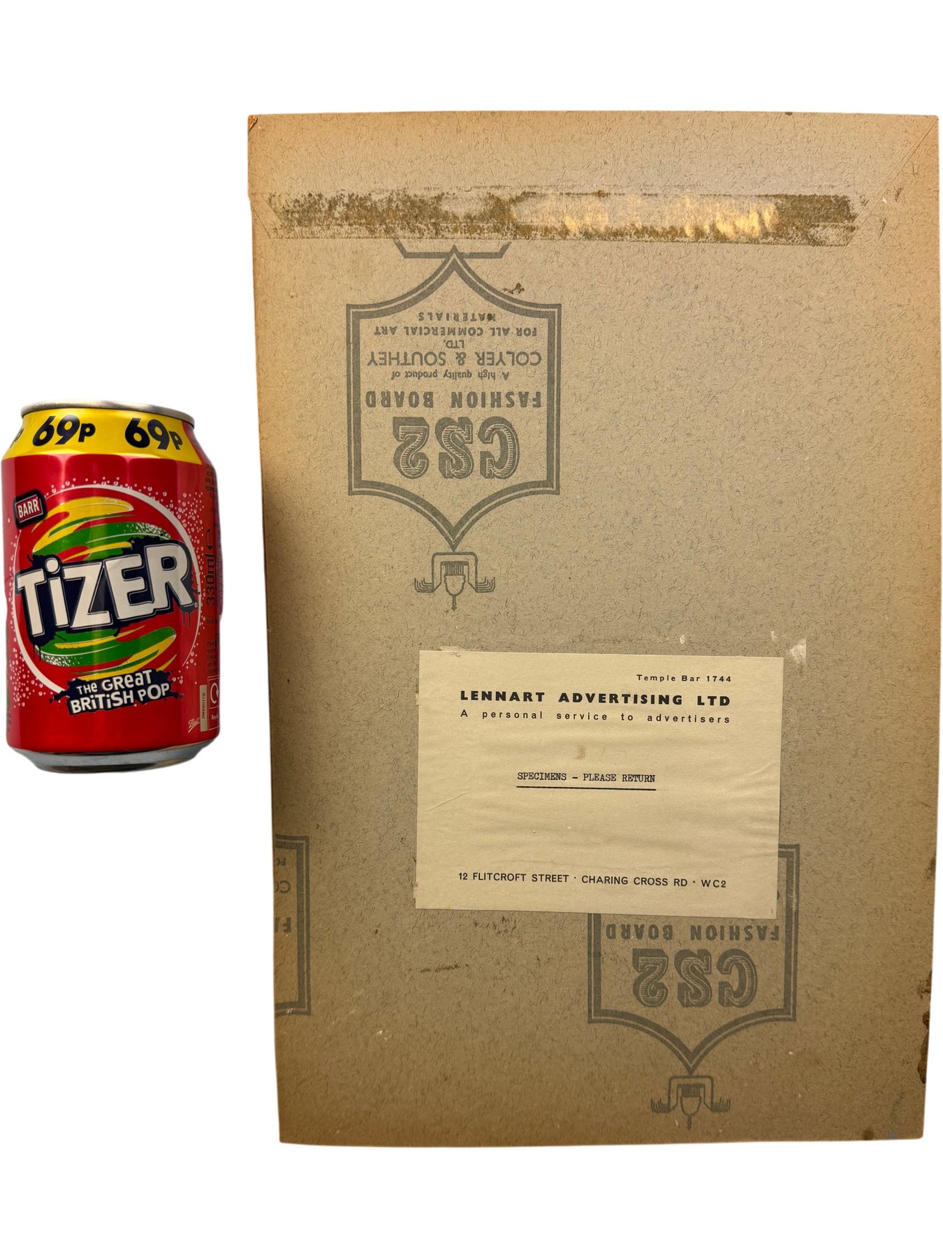 Vintage 1960s children's fashion advertisement featuring various outfits and accessories. Printed by Lennart Advertising Ltd for promotion. Includes illustrations of boys and girls in different clothing styles. Belinda Lyon Design
