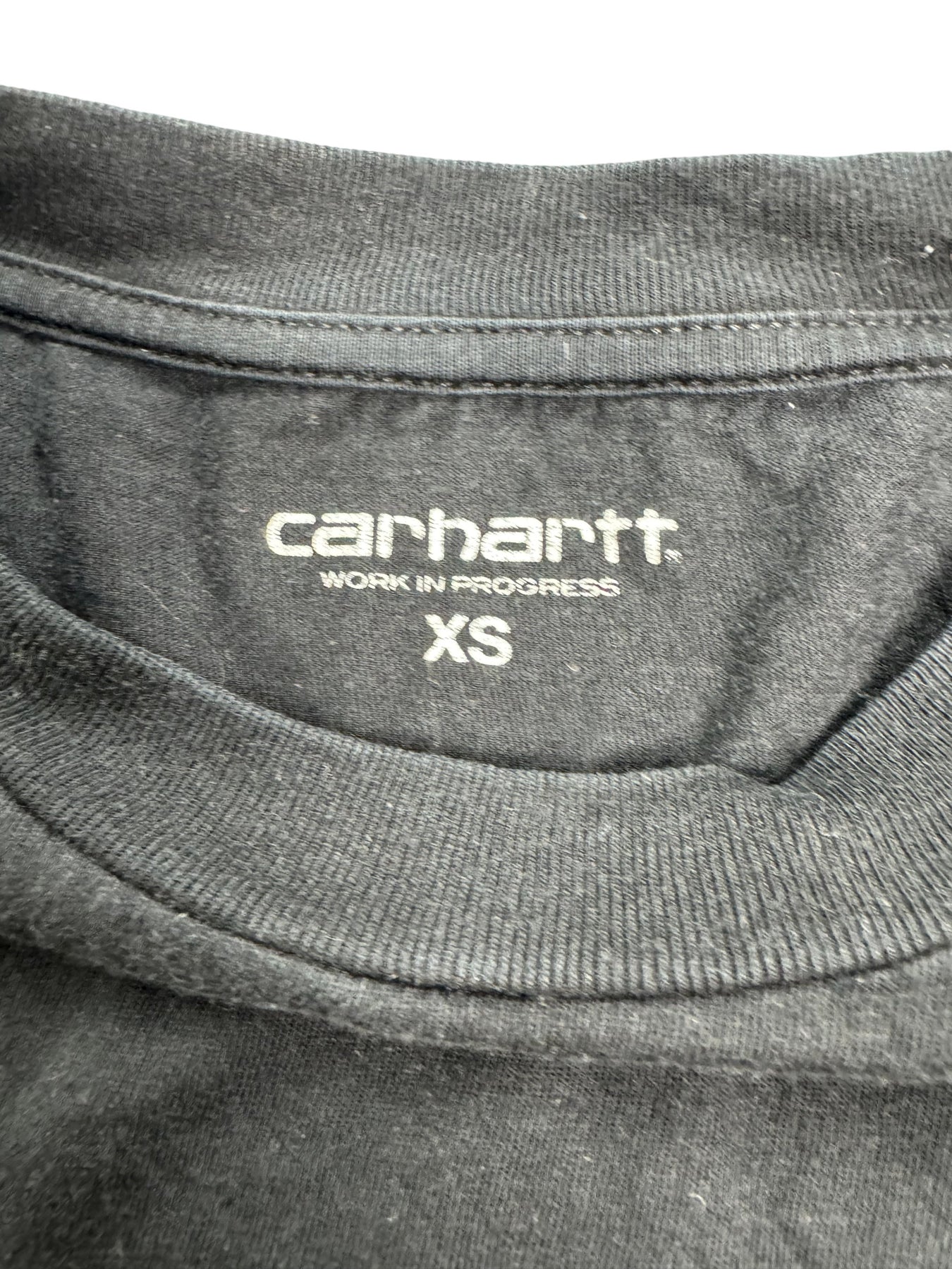 Carhartt black T-shirt made of 100% organic cotton, featuring short sleeves and the Carhartt logo embroidery on the front. Made in Bulgaria.