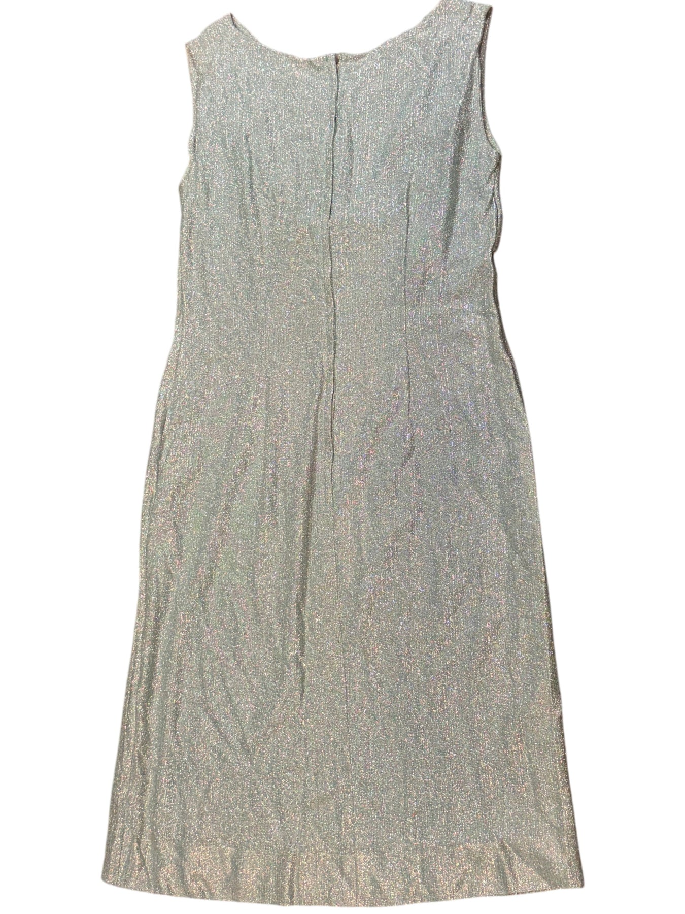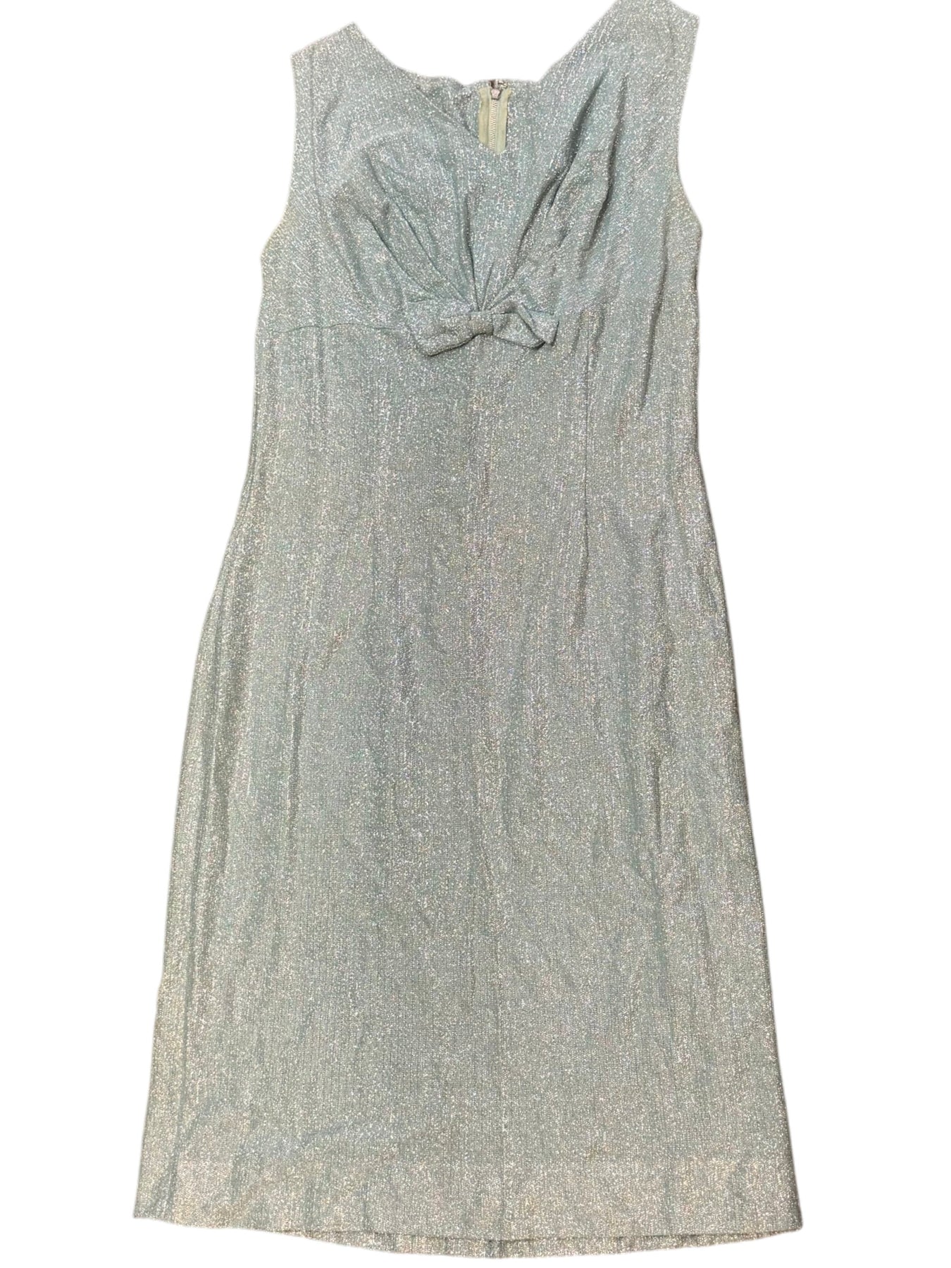 Sparkling sleeveless dress with elegant bow detail on the front, featuring a subtle back zipper. Perfect for formal occasions.