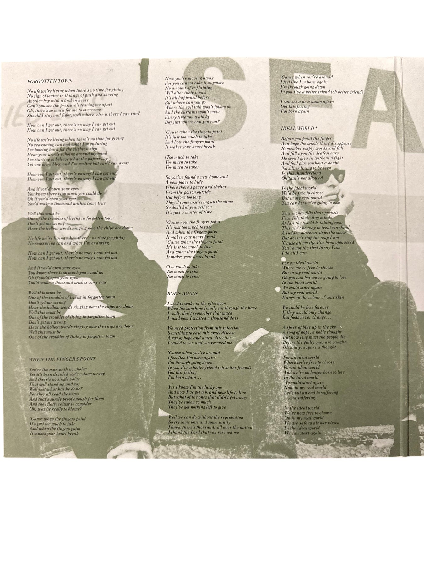 Includes the hit singles 'Ideal World' and 'Forgotten Town'. Features an inner lyric sheet. Produced by Laurie Latham. Mixed by D. Bascombe and P. Hammond.