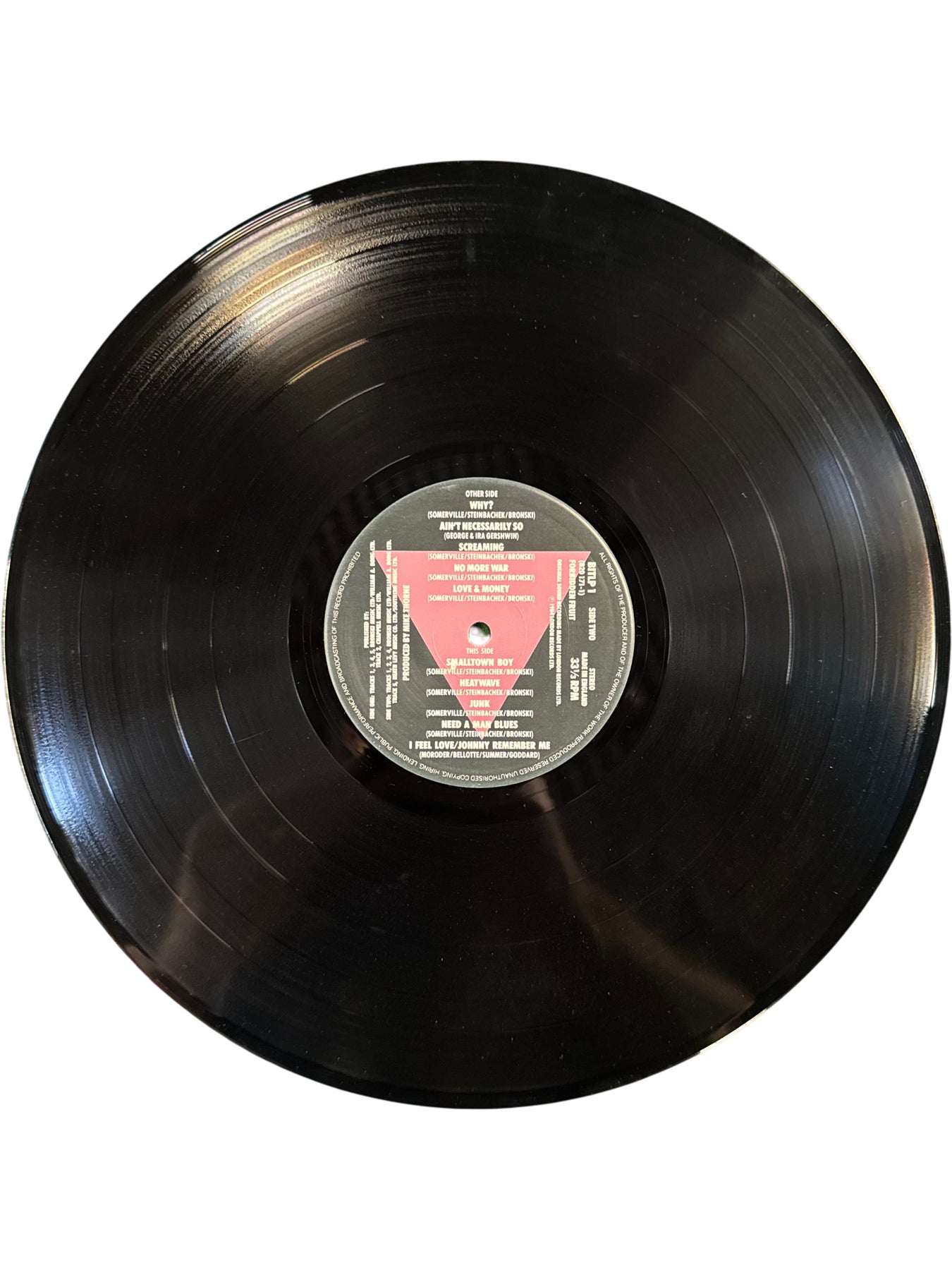 1984 release by Bronski Beat featuring tracks like "Smalltown Boy" and "Why". The album cover displays distinct geometric patterns. Includes a lyric insert with photos.