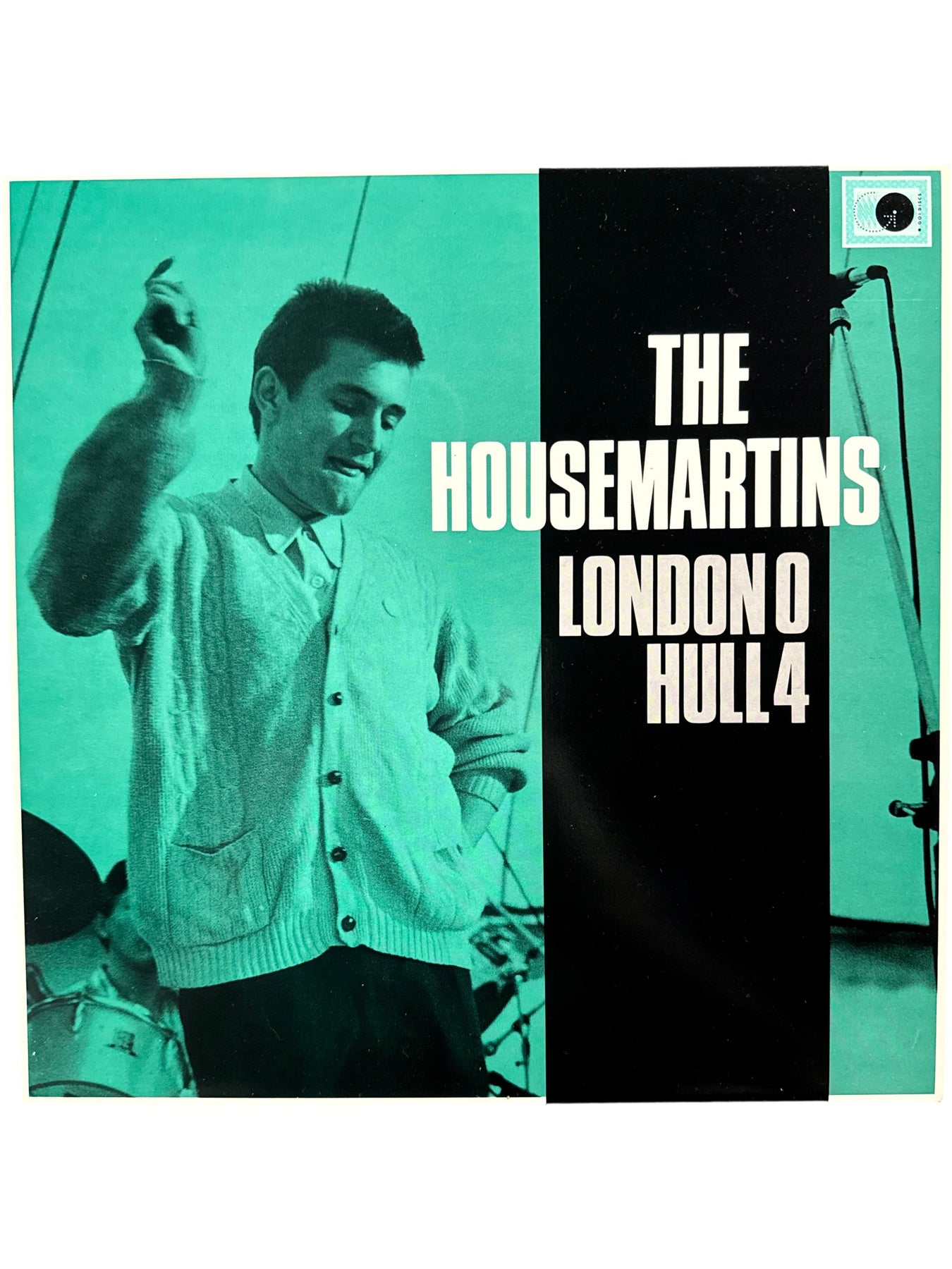 Vinyl record of the album 'London 0 Hull 4' by The Housemartins released in 1986. Includes tracks like 'Happy Hour', 'Sheep', and 'Freedom'. Produced by John Williams and distributed by Go! Discs in 33⅓ RPM stereo format.