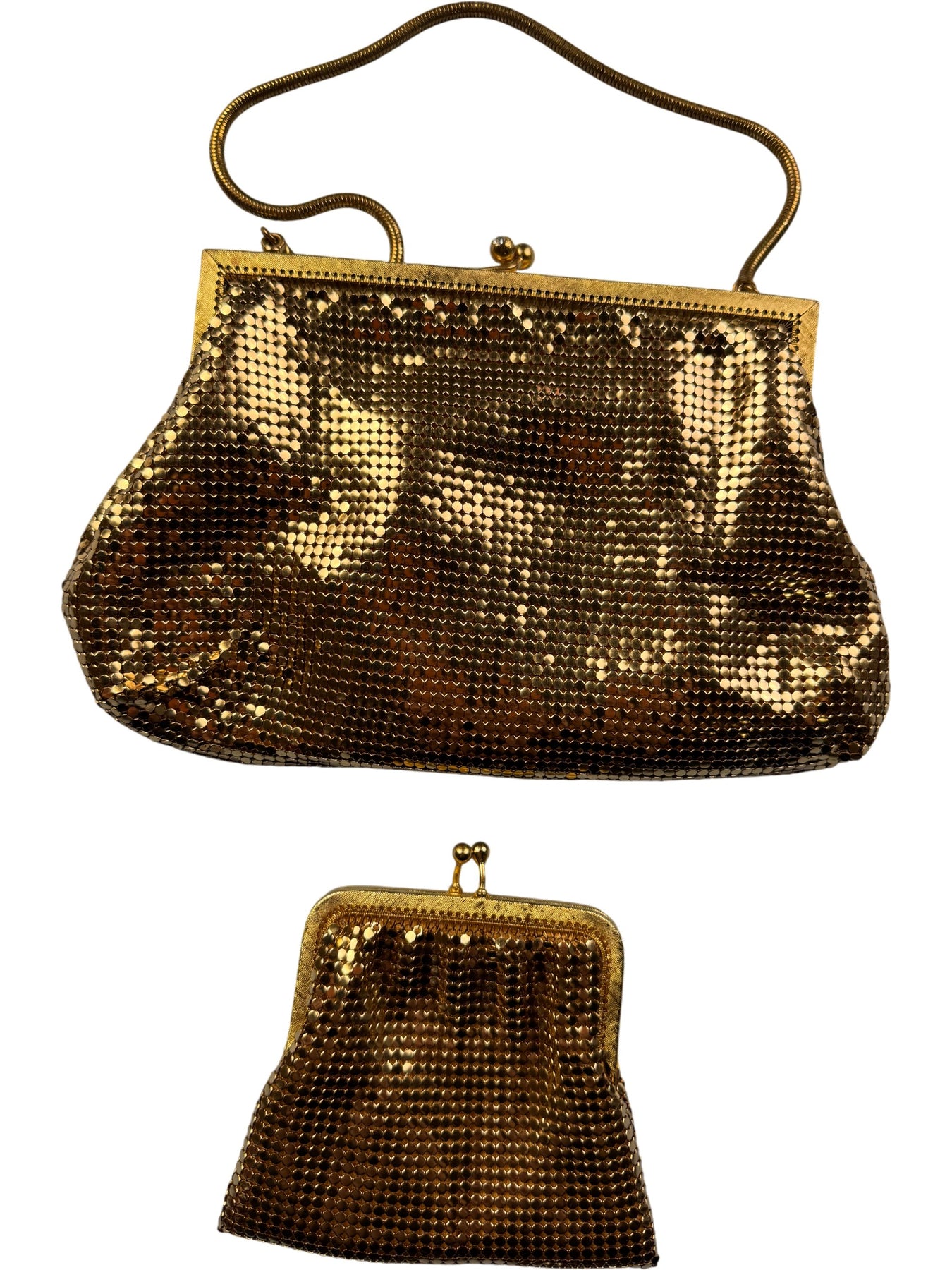 Gold Tone Mesh Minaudière Bag