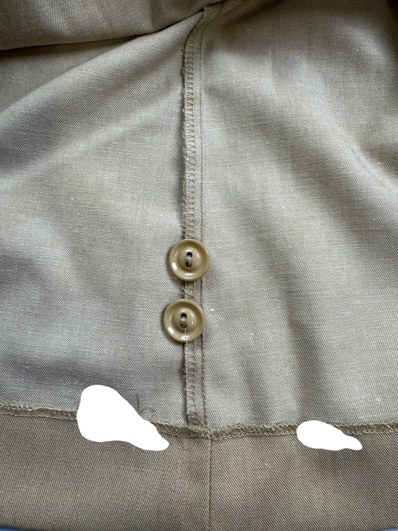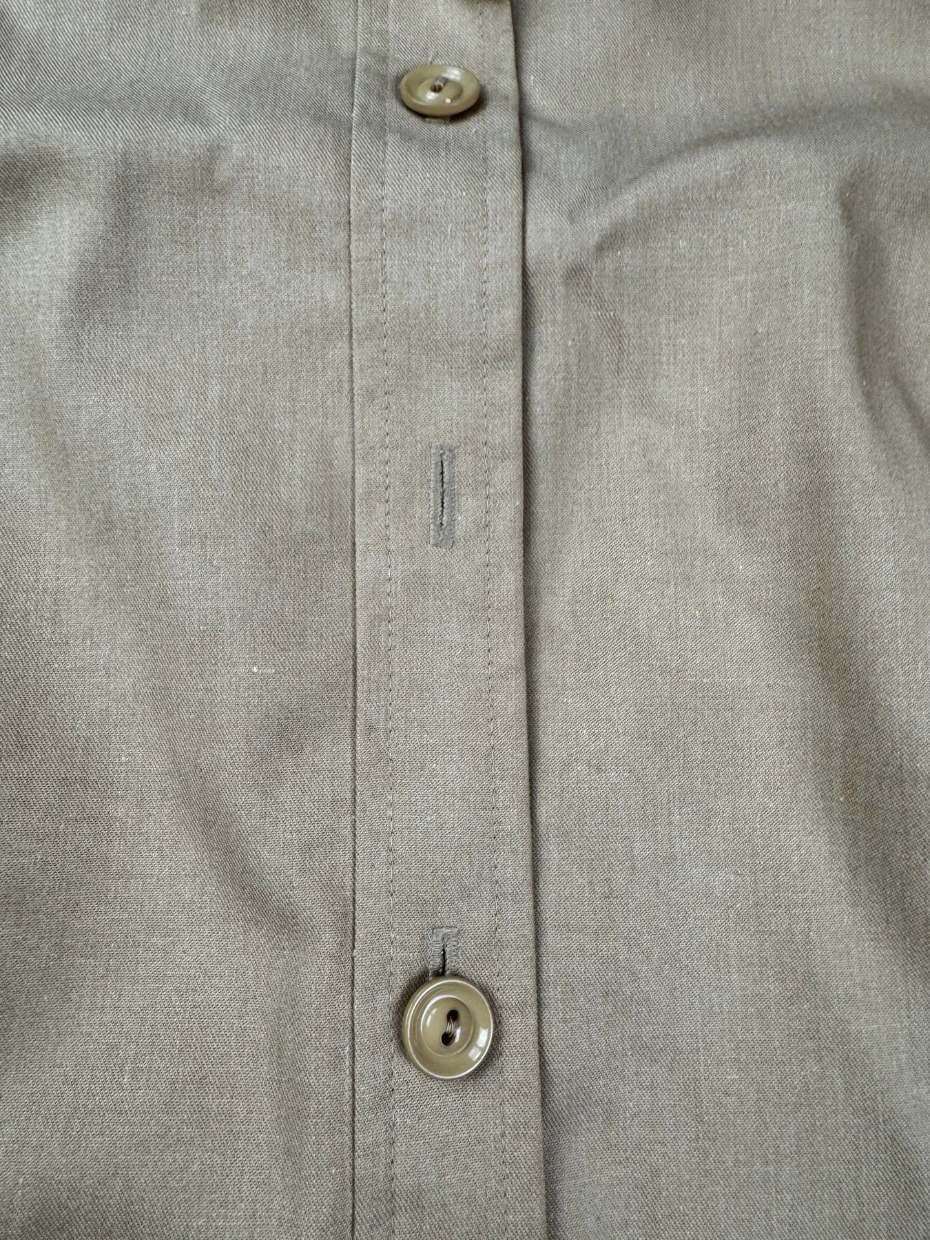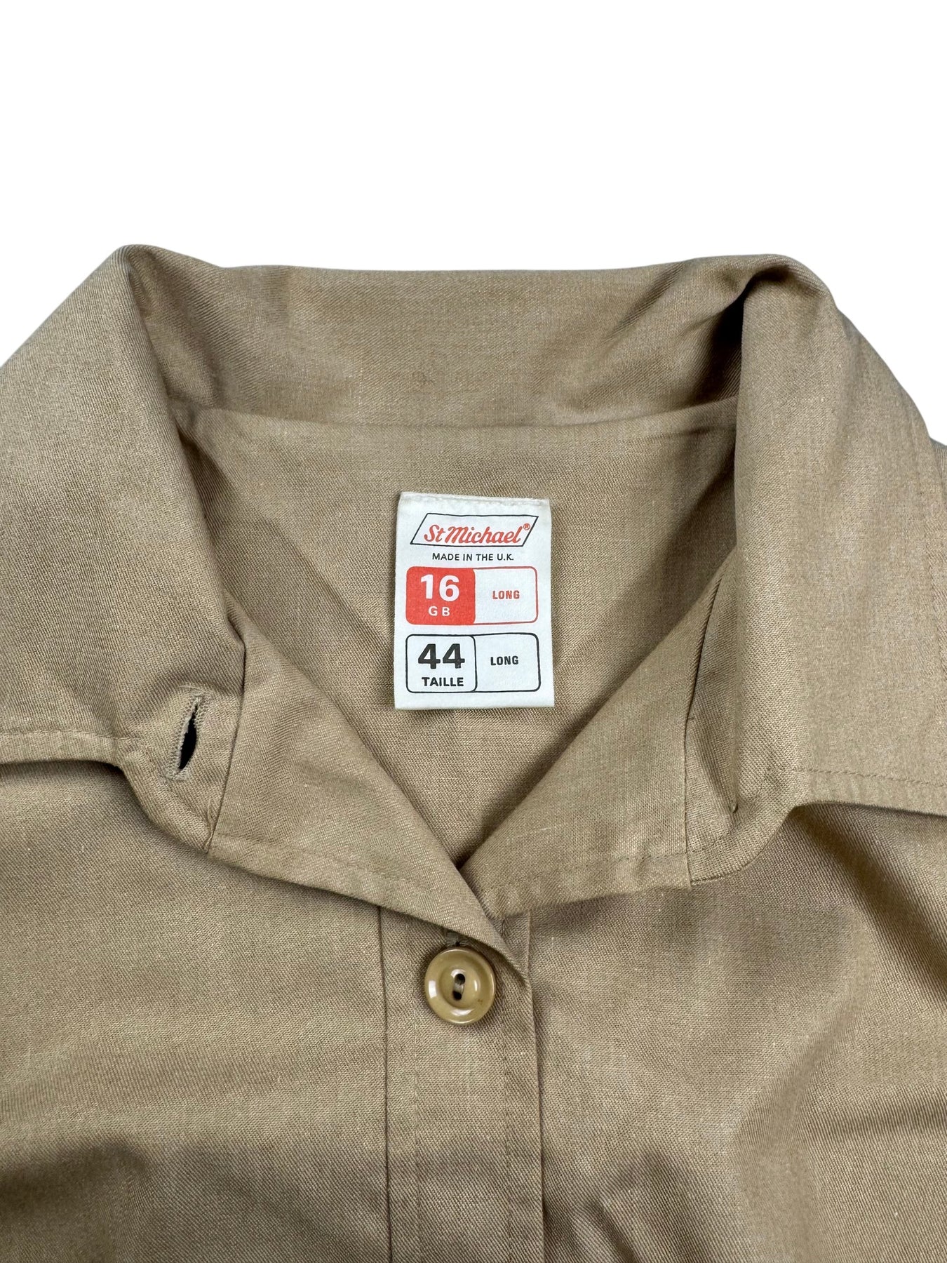 St Michael beige sleeveless dress with button front detail and belted waist. Features two front pockets and shoulder epaulettes. Missing a button but spares in the inside as pictured.