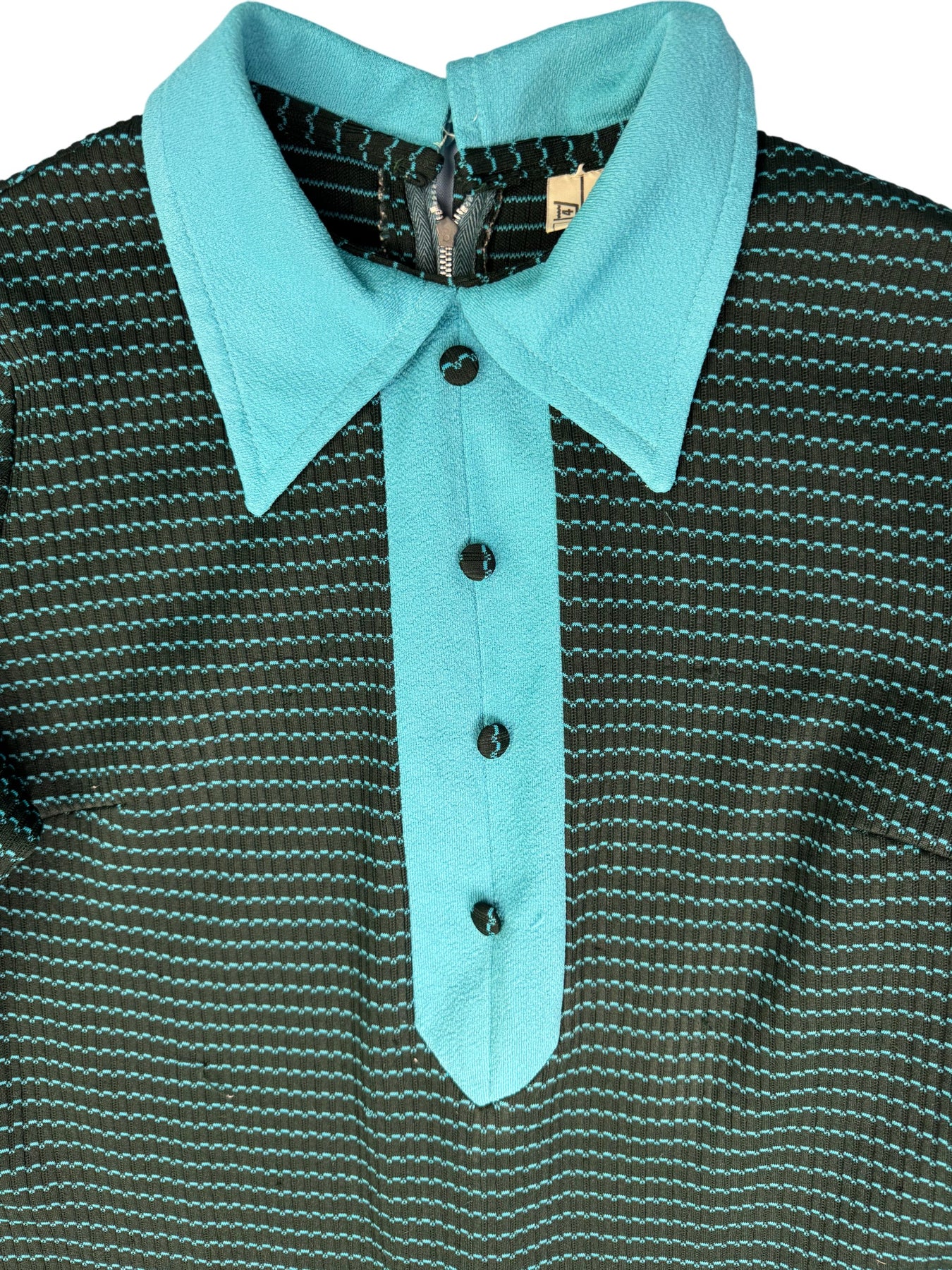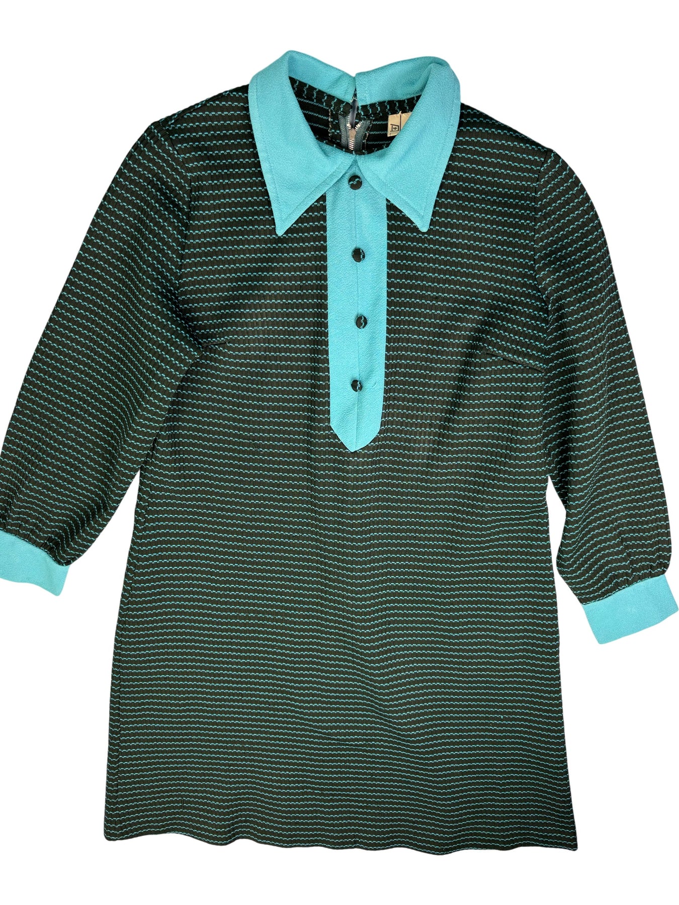 Striped Long Sleeve Dress with Contrast Collar - L - Think Vintage