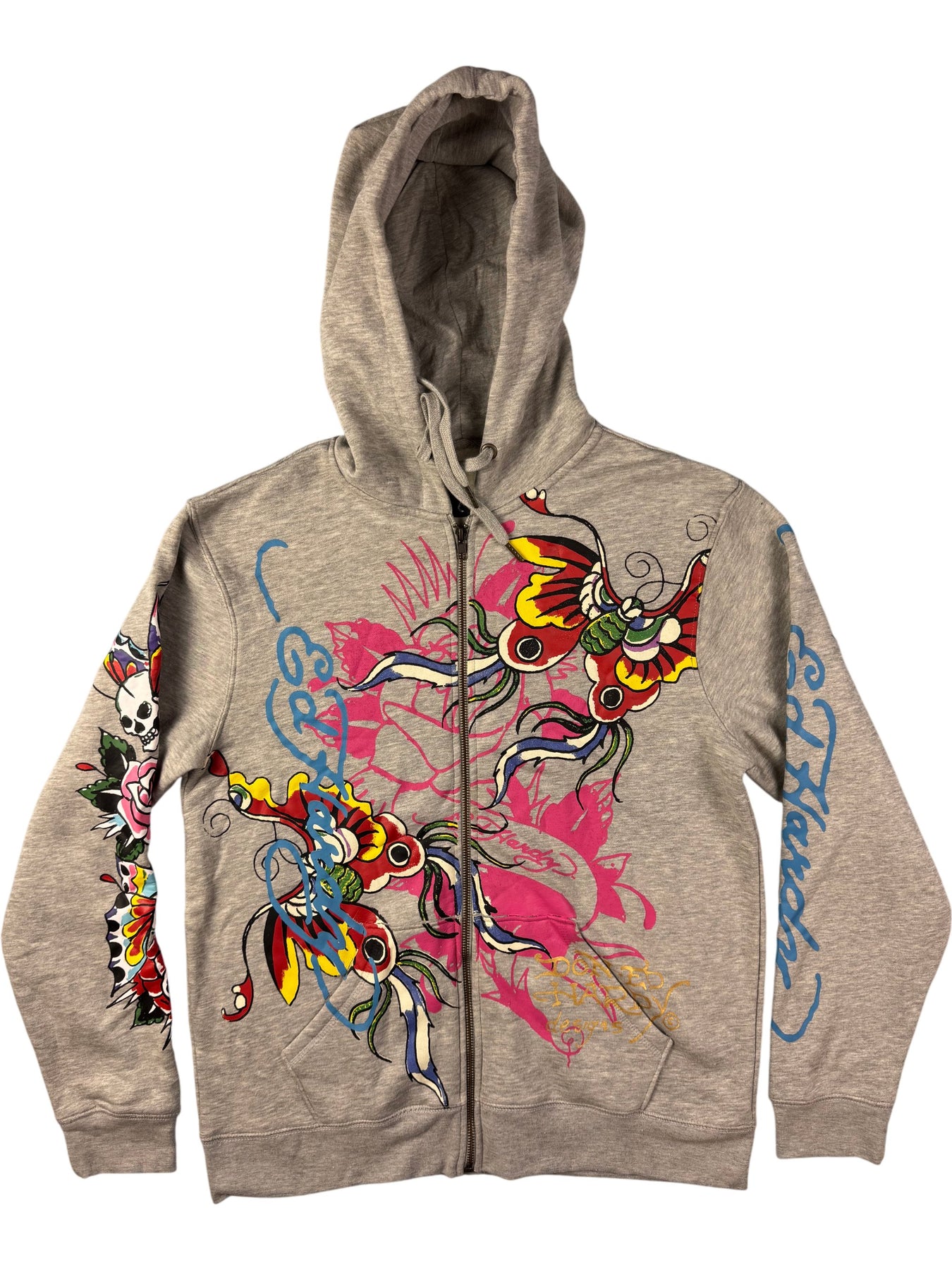 Ed Hardy Hooded Sweatshirt with Graphic Print - L - Think Vintage