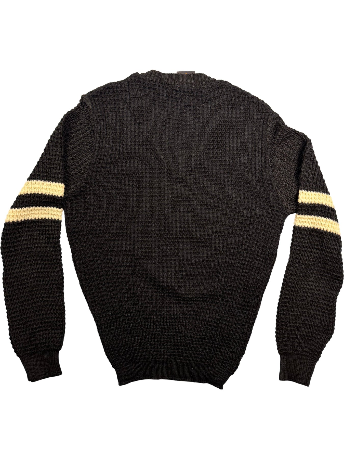 Daniel V-Neck Knit Sweater with Stripe Sleeves - S